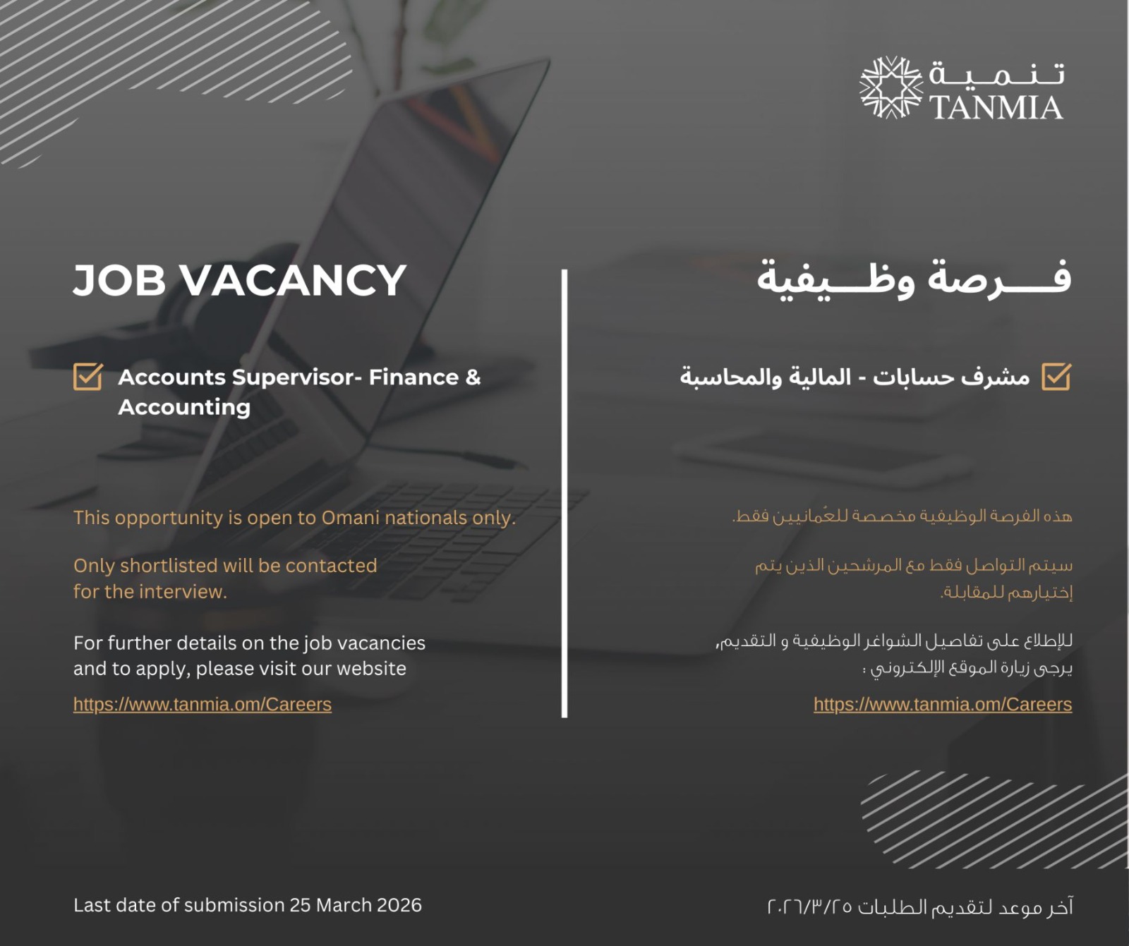 الشركة العمانية لتنمية الاستثمارات الوطنية تنمية - وظيفة شاغرة ( مشرف حسابات - المالية والمحاسبة )