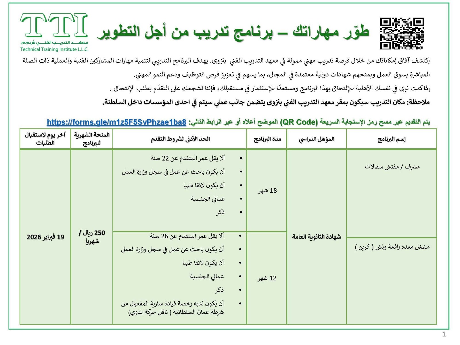 معهد التدريب الفني TTI - تعلن عن برنامج تدريبي من اجل التطوير + 250 ريال منحة شهرية