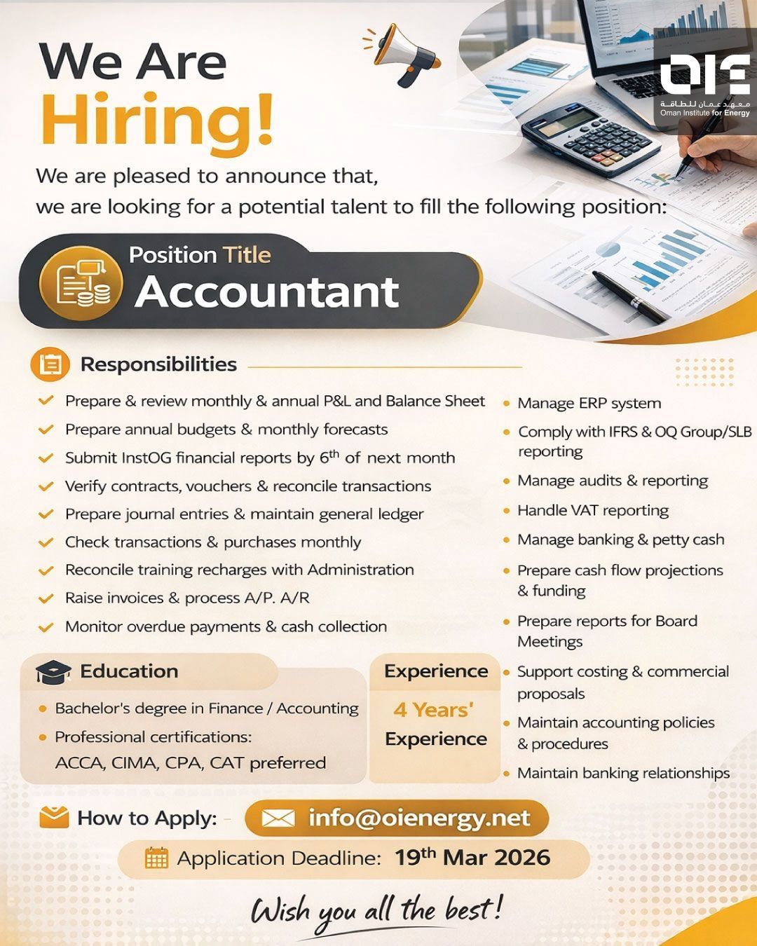 معهد عمان للطاقة - وظيفة شاغرة ( محاسب )