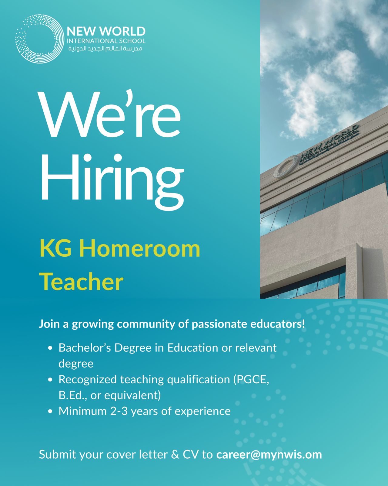 مدرسة العالم الجديد الدولية في مسقط - توفر وظائف تدريسية وإدارية