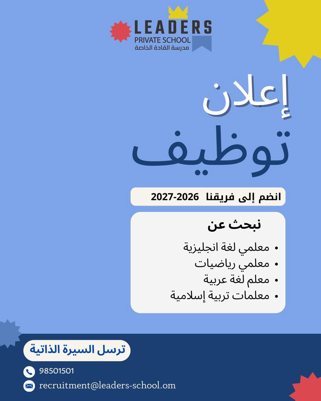 مدرسة القادة الخاصة في السيب - وظائف تعليمية شاغرة