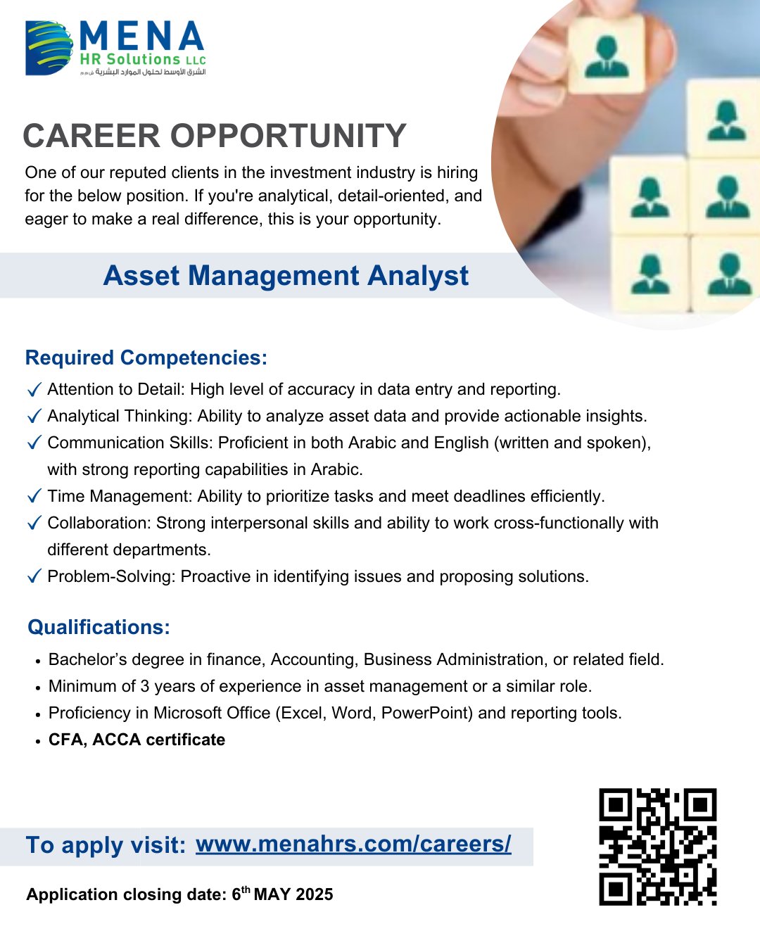 الشرق الأوسط لحلول الموارد البشرية - وظيفة شاغرة ( Asset Management Analyst )