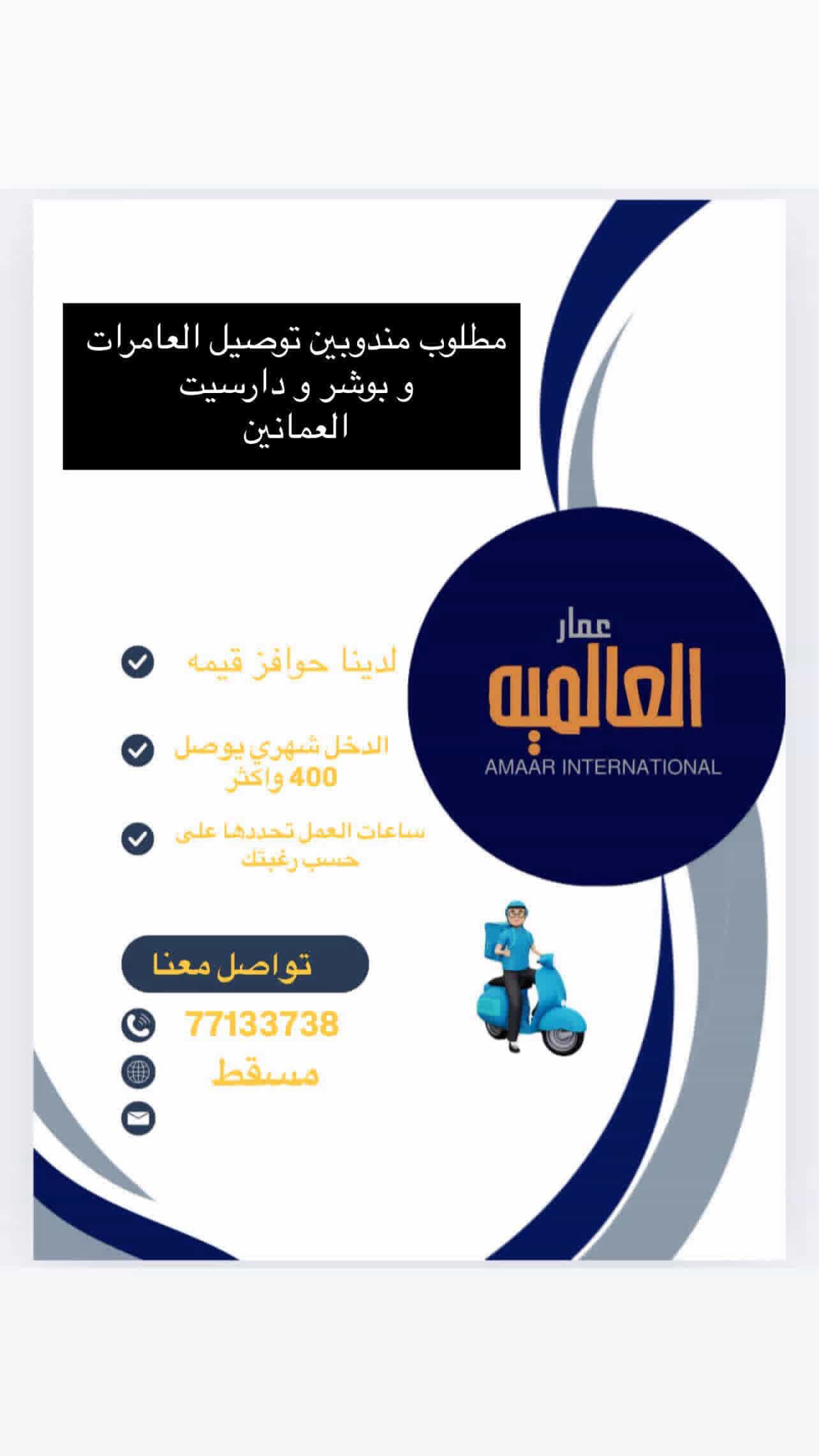 شركة عمار العالمية - فرص شاغرة ( مندوبين توصيل )
