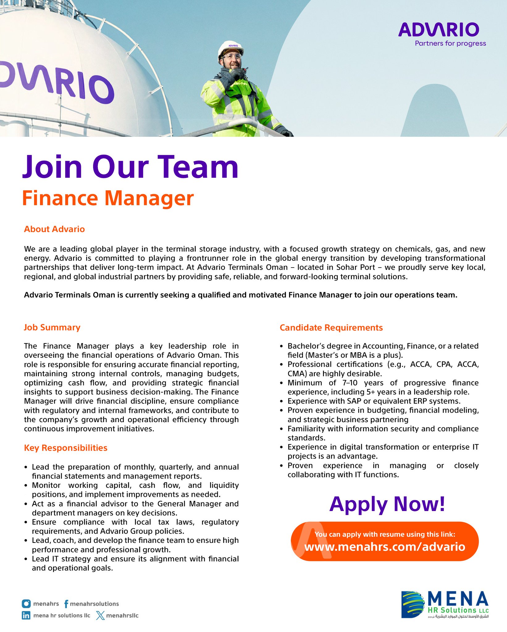 شركة أدفاريو - وظيفة شاغرة ( Finance Manager )