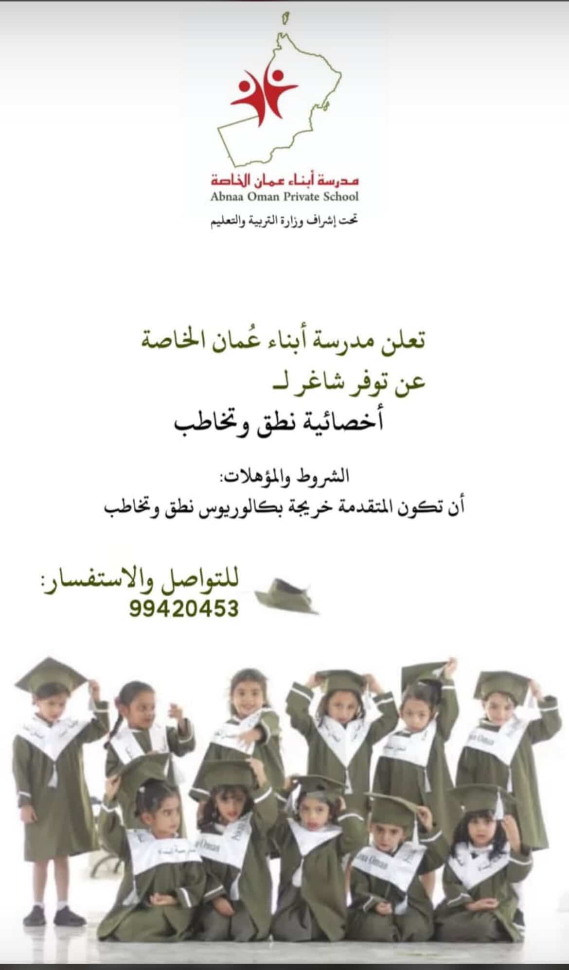 مدرسة أبناء عمان الخاصة - وظيفة شاغرة ( أخصائية نطق وتخاطب )