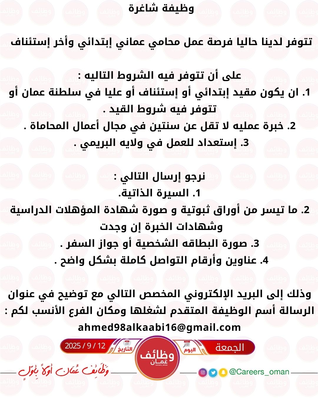ارسل السيرة الذاتية على الايميل