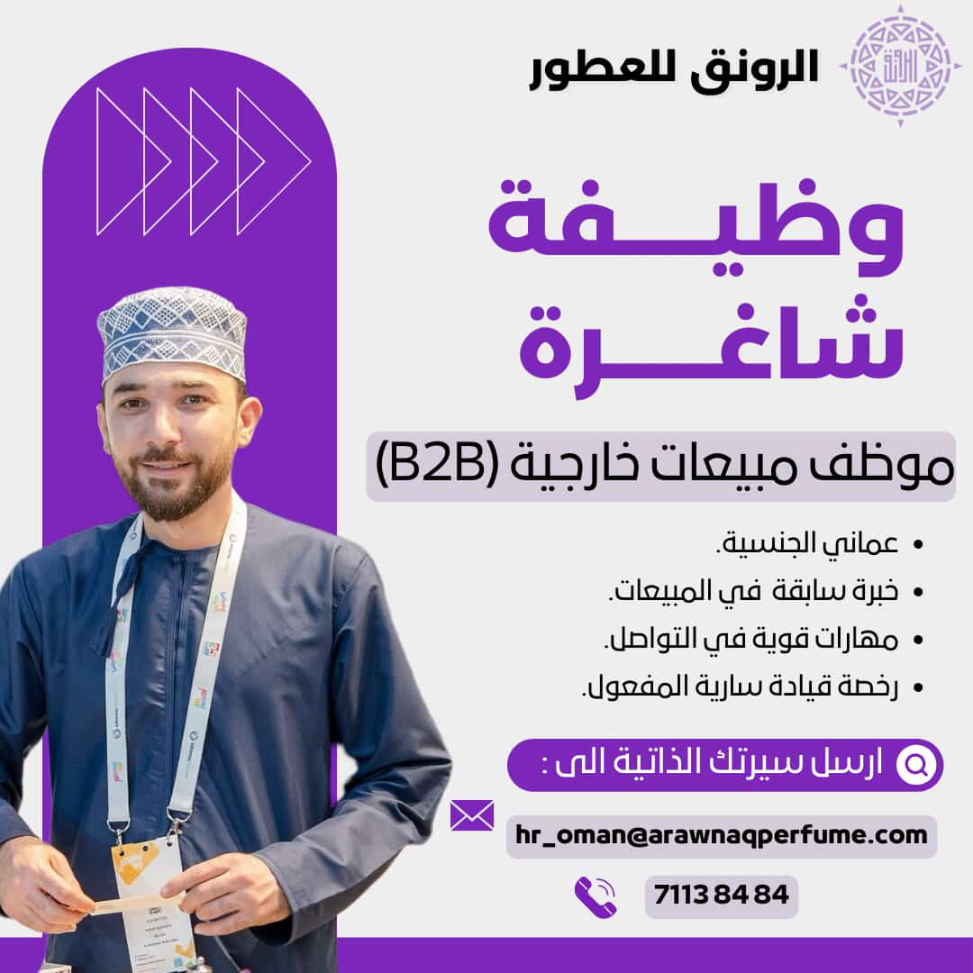 ارسل السيرة الذاتية على الايميل hr_oman@arawnaqperfume.com