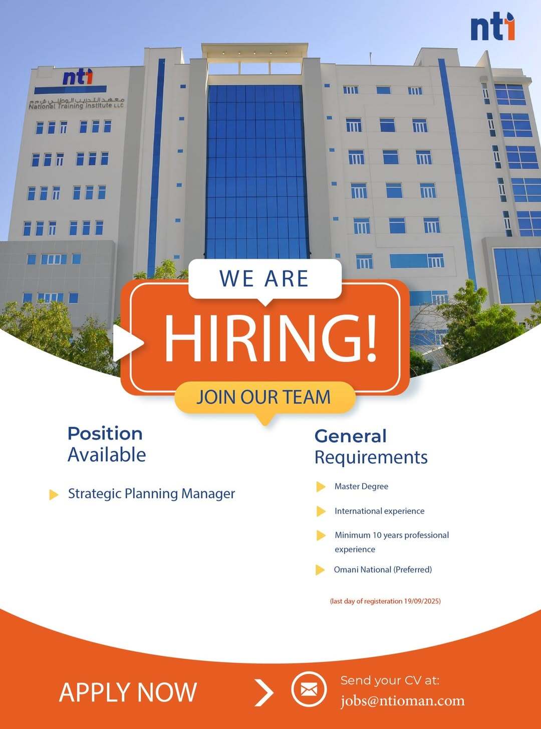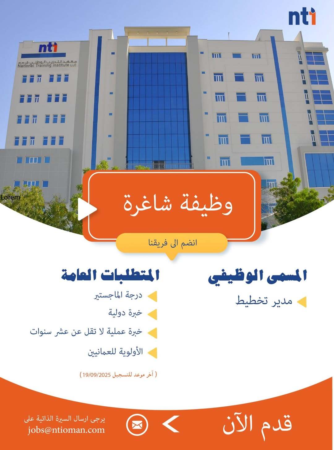 ارسل السيرة الذاتية على الايميل jobs@ntioman.com