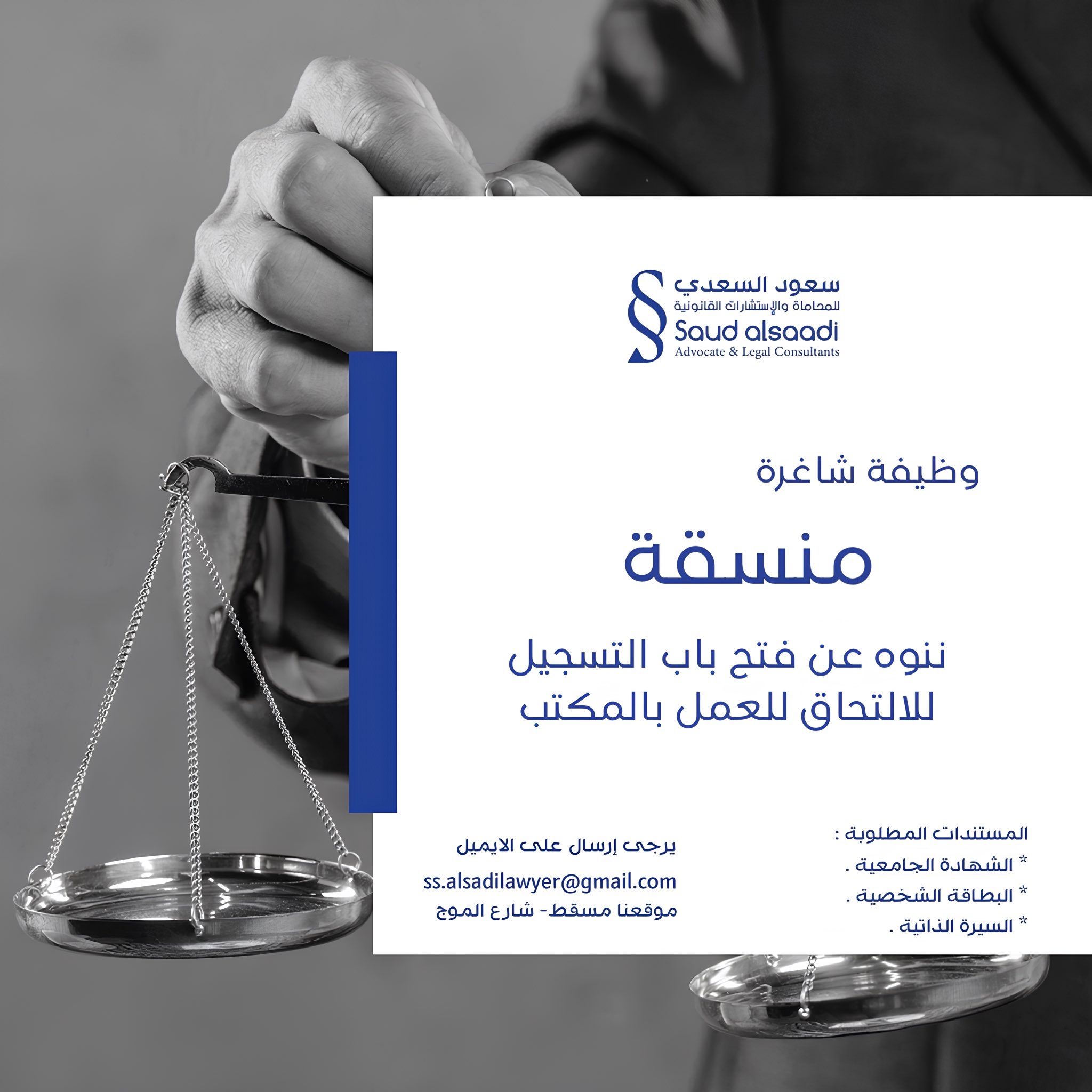 ارسل السيرة الذاتية على الايميل ss.alsadilawyer@gmail.com