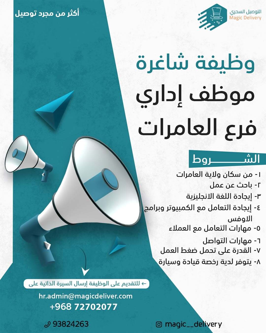 ارسل السيرة الذاتية على الايميل hr.admin@magicdeliver.com