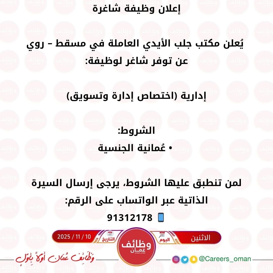 مكتب جلب الأيدي العاملة في روي - وظيفة شاغرة ( موظفة إدارية )