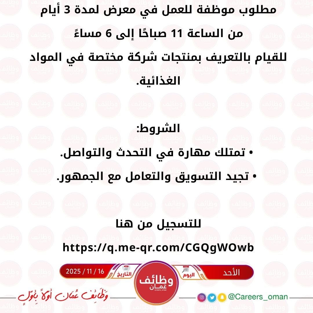شركة مختصة في المواد الغذائية - وظيفة شاغرة ( موظفة للعمل في معرض )