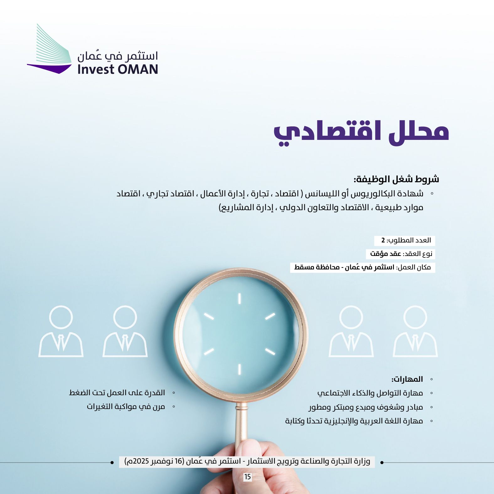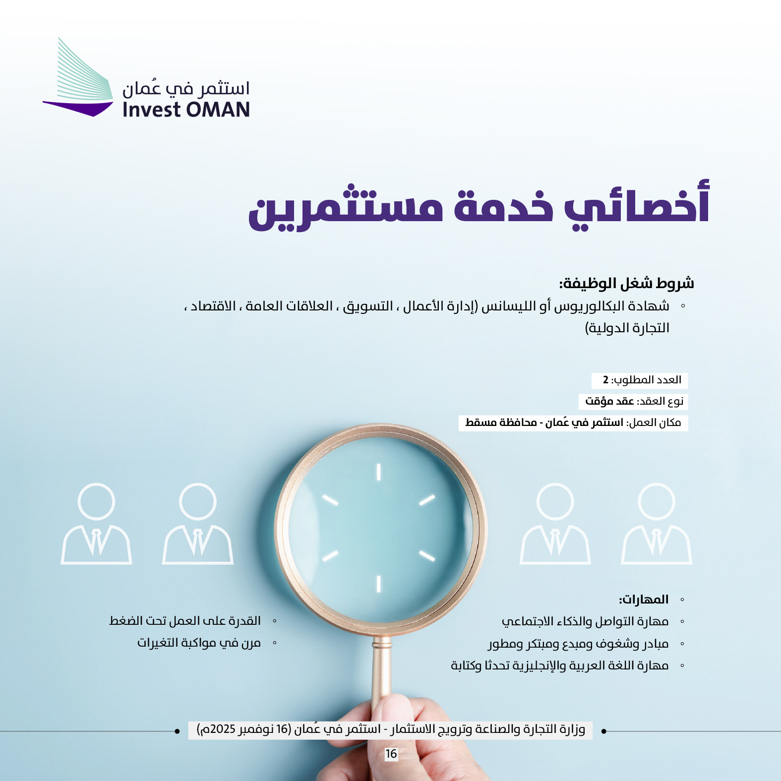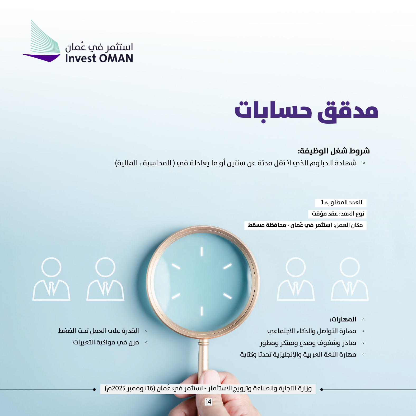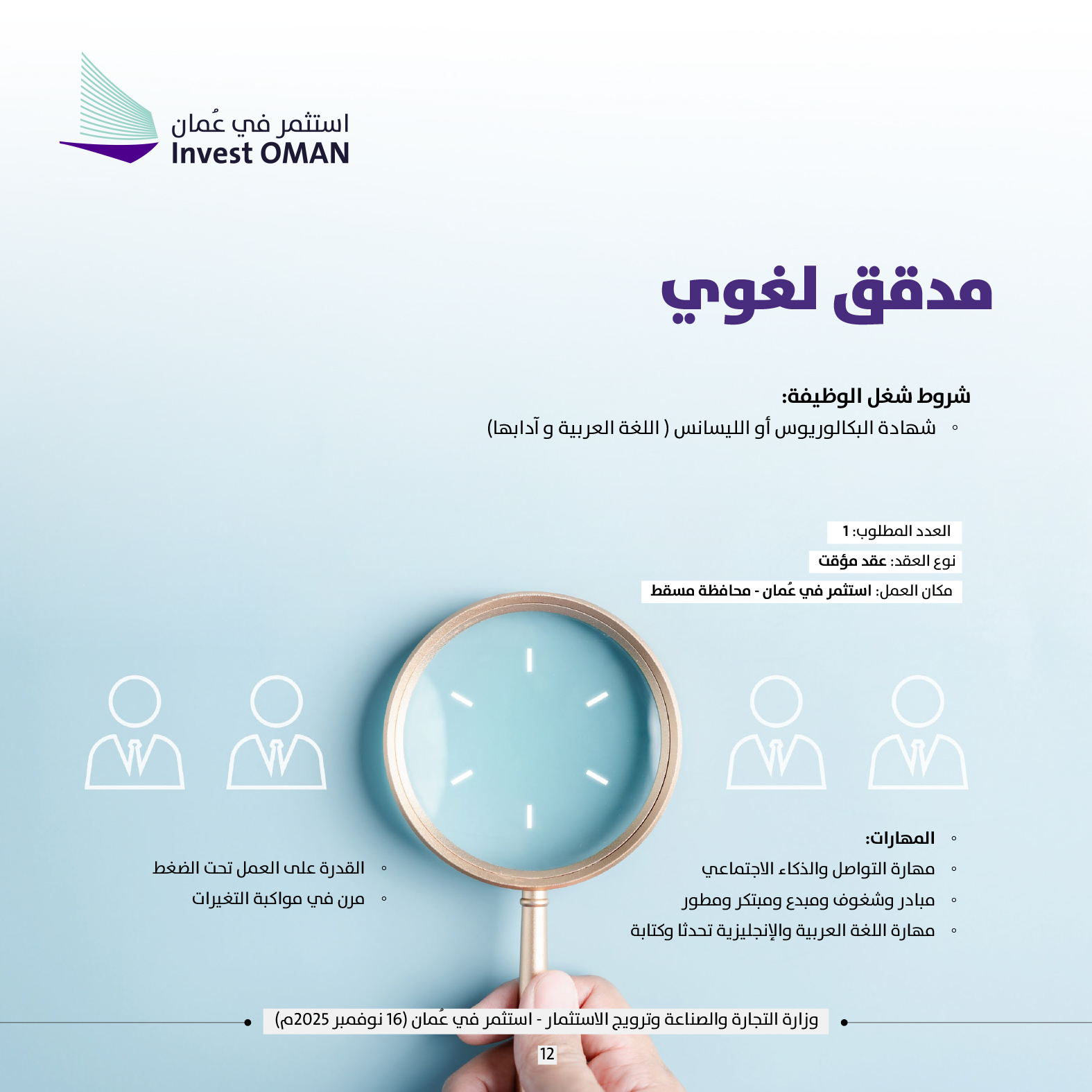 فعلى من يجد في نفسه الكفاءة والرغبة لشغلها التقدم بطلبه للموارد البشرية عبر البريد الإلكتروني (Recruitment@investoman.om).