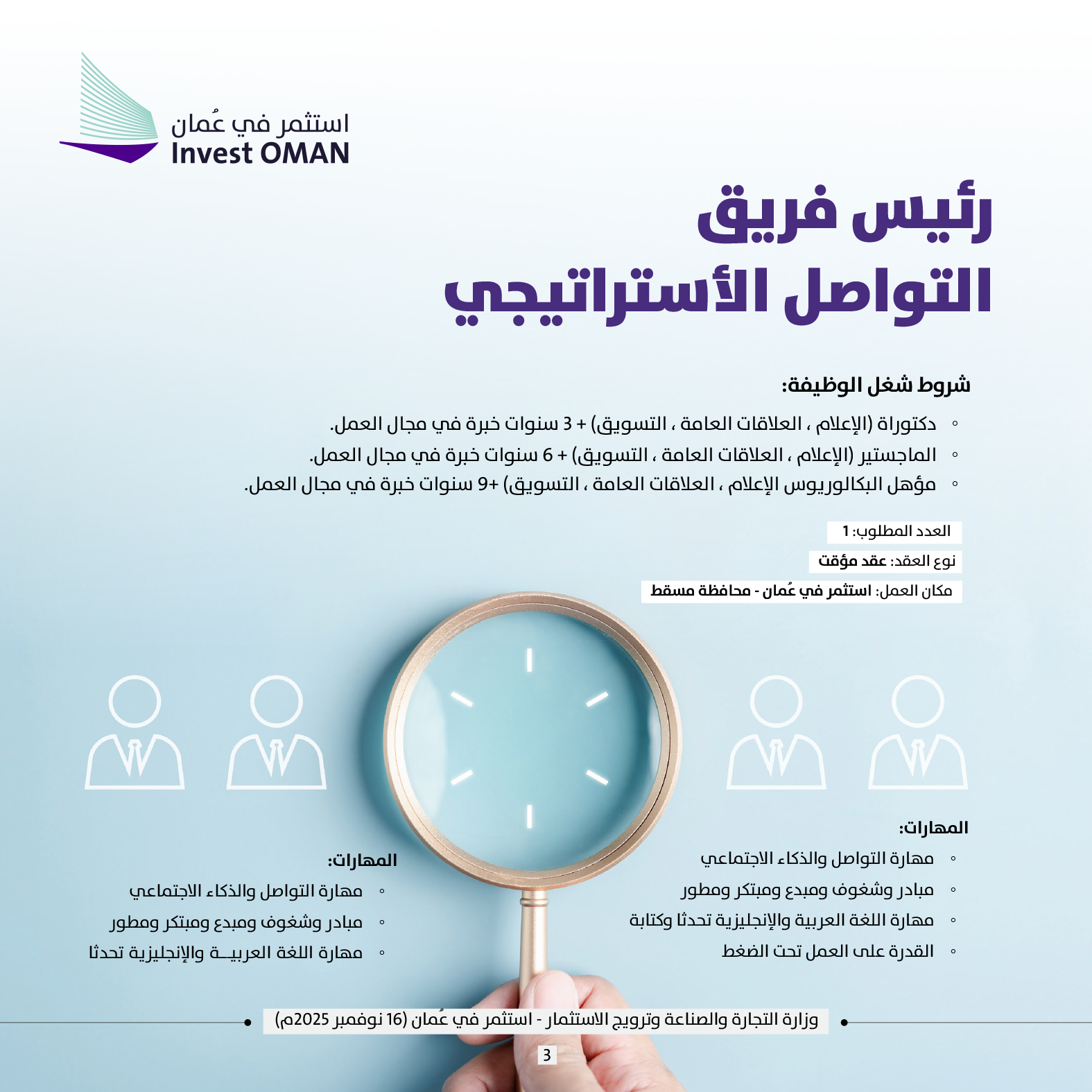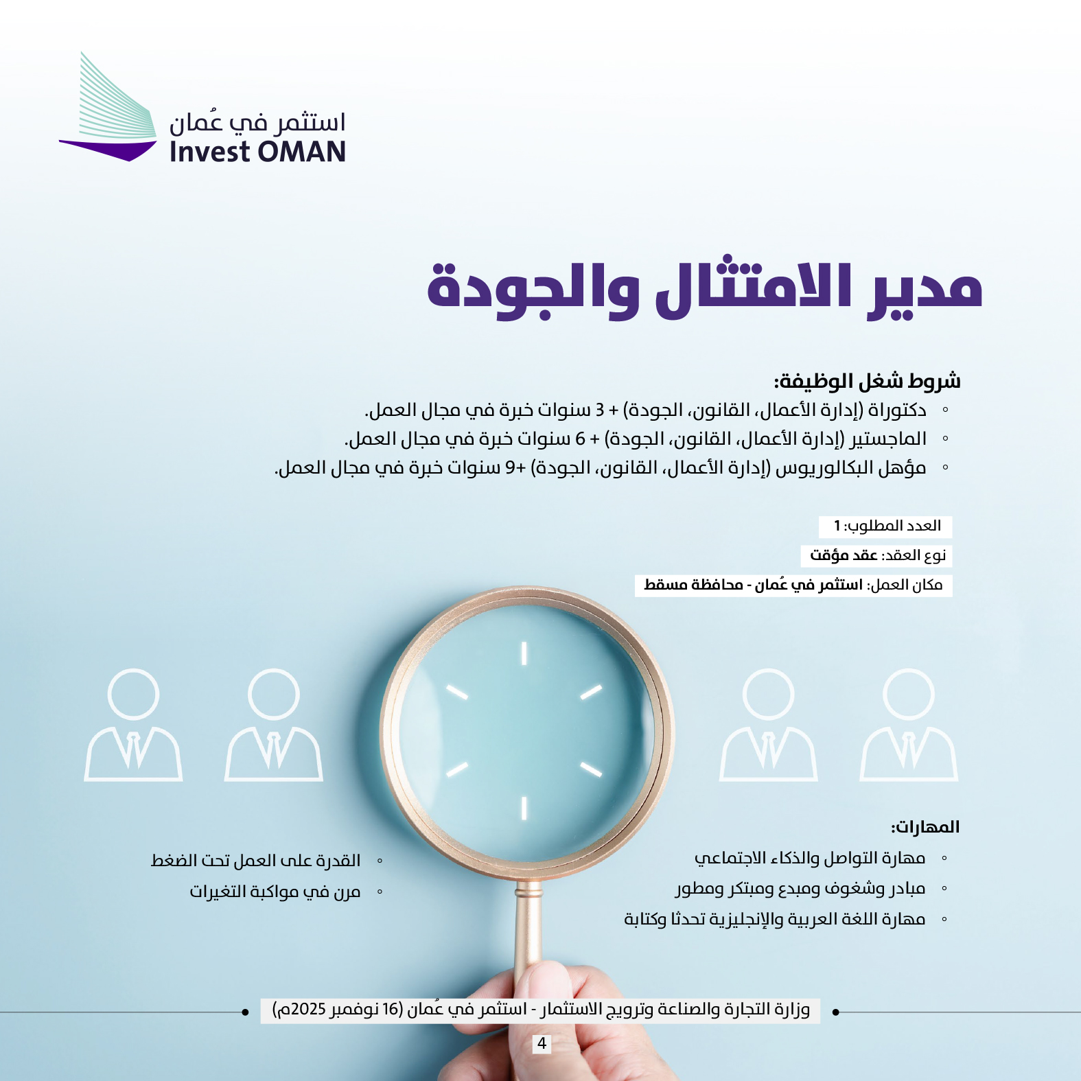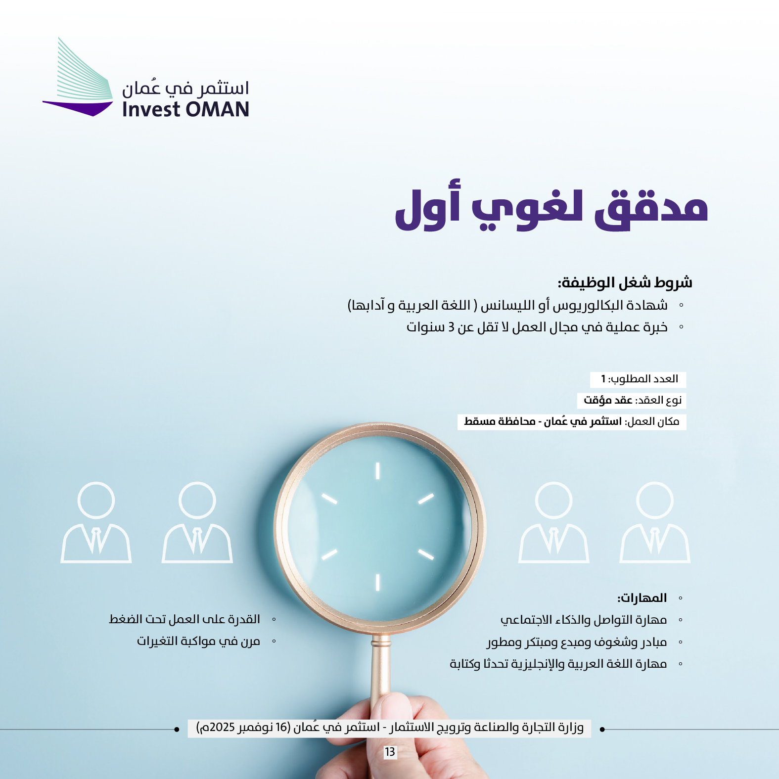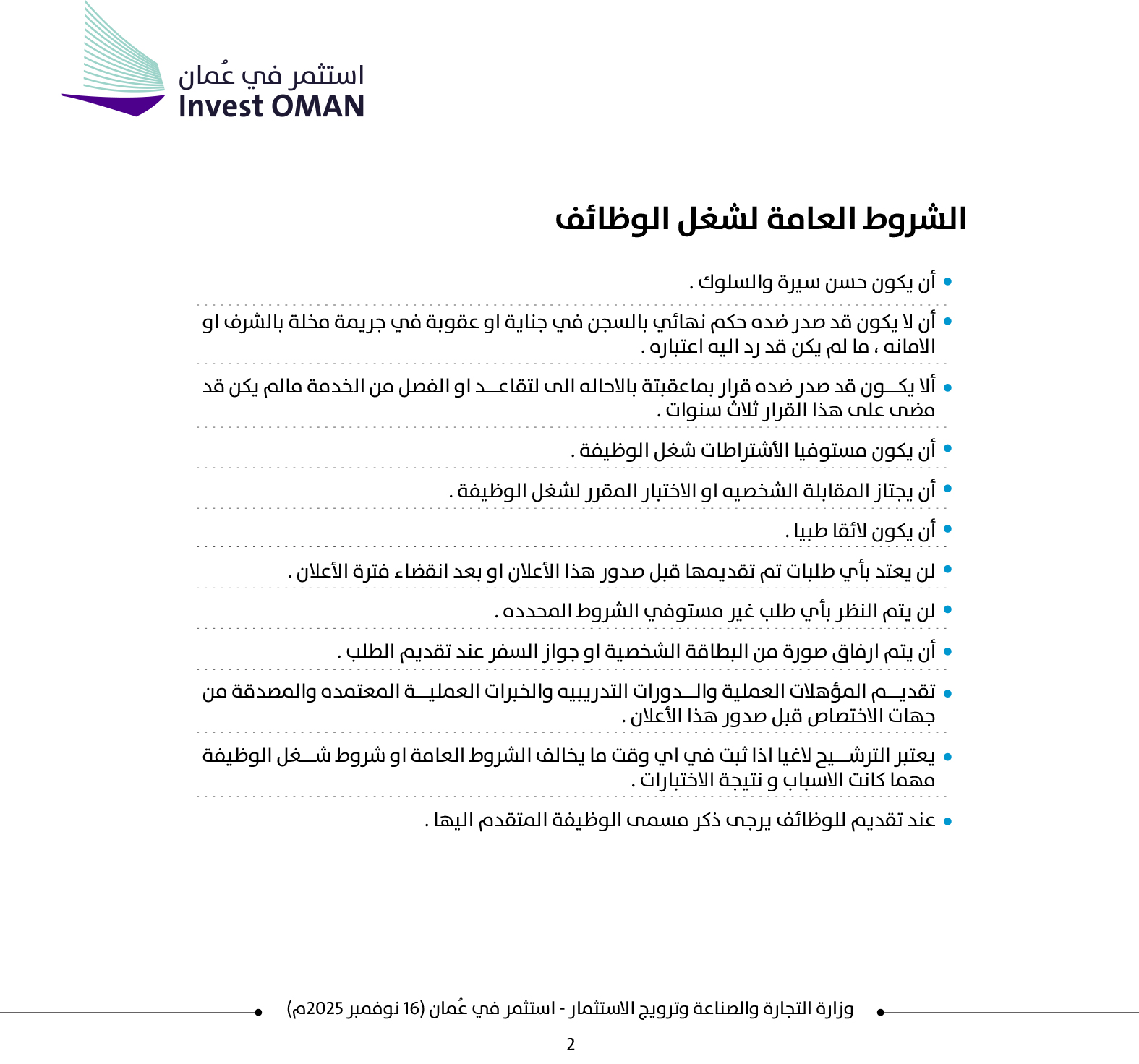 فعلى من يجد في نفسه الكفاءة والرغبة لشغلها التقدم بطلبه للموارد البشرية عبر البريد الإلكتروني (Recruitment@investoman.om).