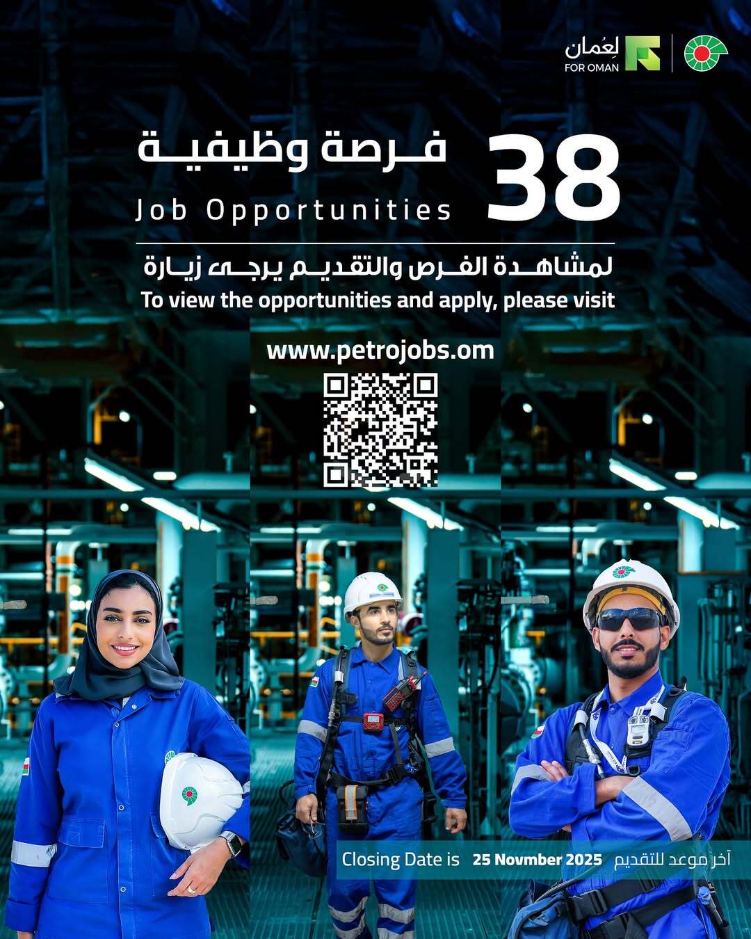 وزارة العمل بالتنسيق مع شركة تنمية نفط عمان - توفر 38 فرصة وظيفية للعُمانيين