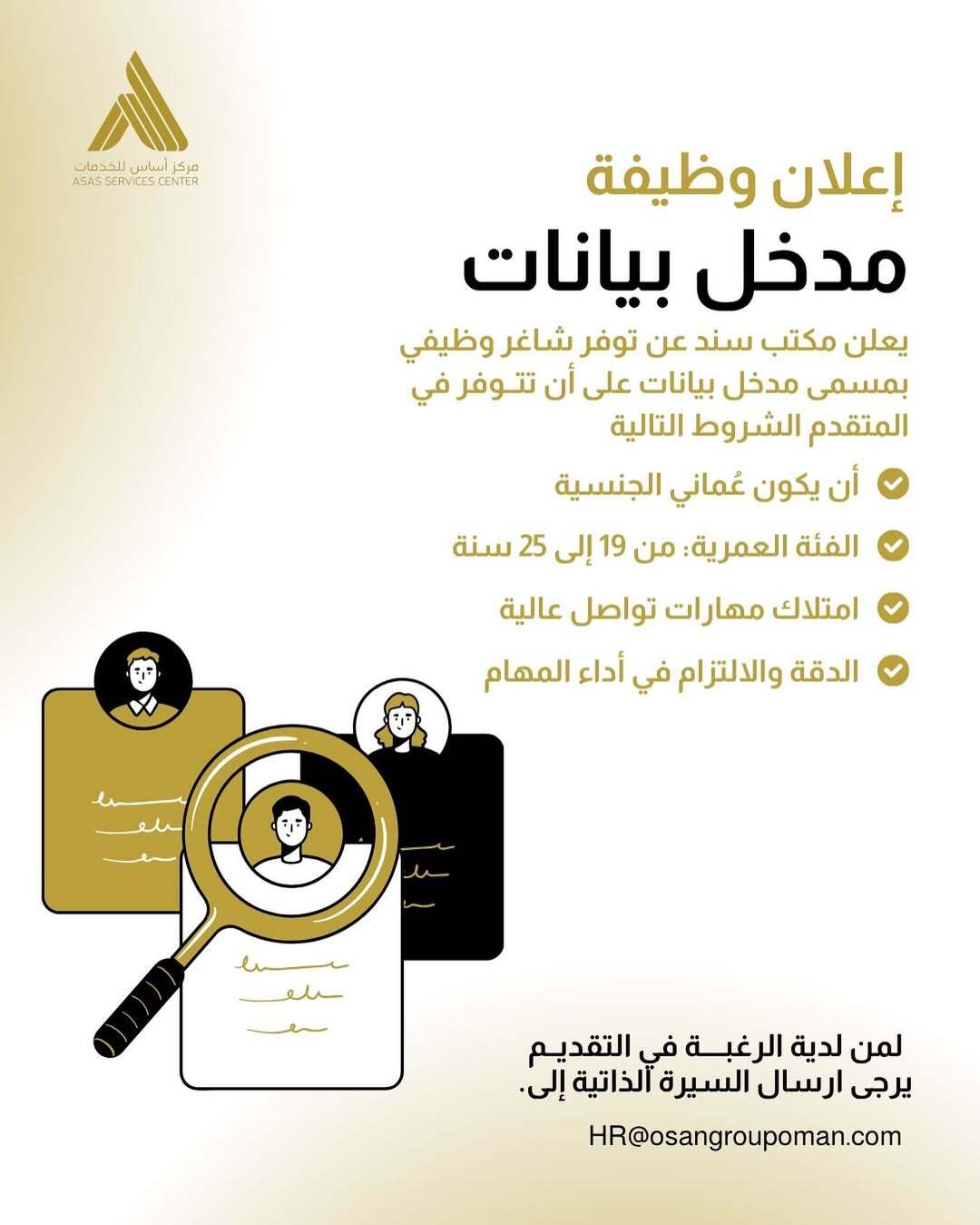 ارسل السيرة الذاتية على الايميل HR@osangroupoman.com