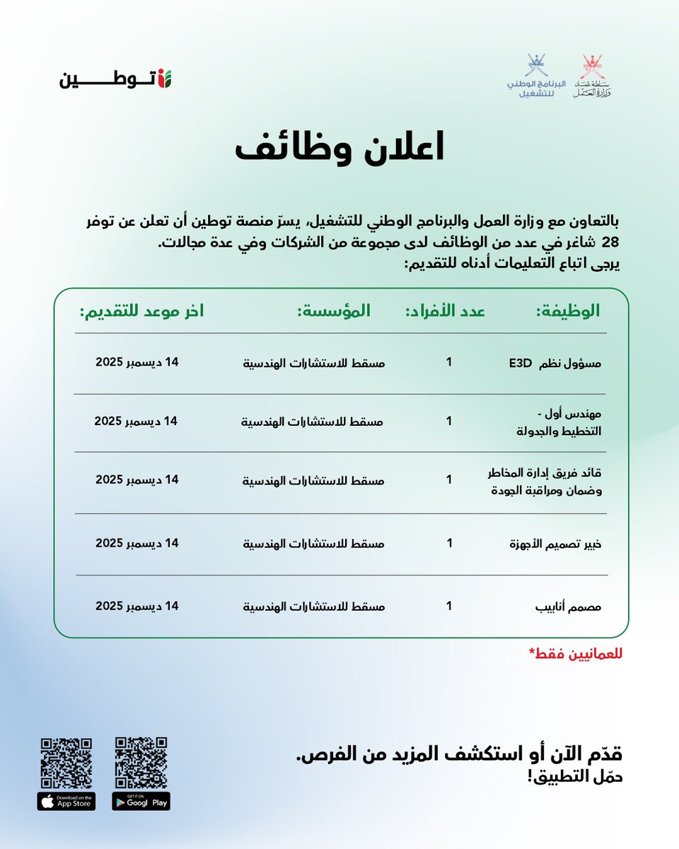 منصة توطين - 28 شاغر في عدد من الوظائف لدى مجموعة من الشركات وفي عدة مجالات