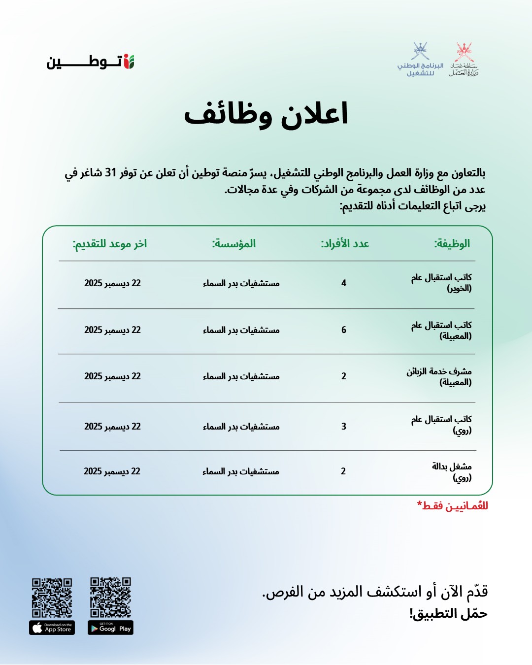 منصة توطين - 31 شاغر في عدد من الوظائف لدى مجموعة من الشركات وفي عدة مجالات