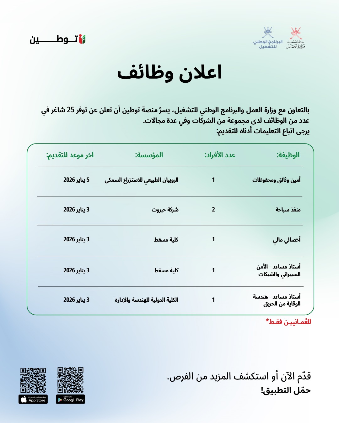 منصة توطين - توفر 25 شاغر في عدد من الوظائف لدى مجموعة من الشركات وفي عدة مجالات