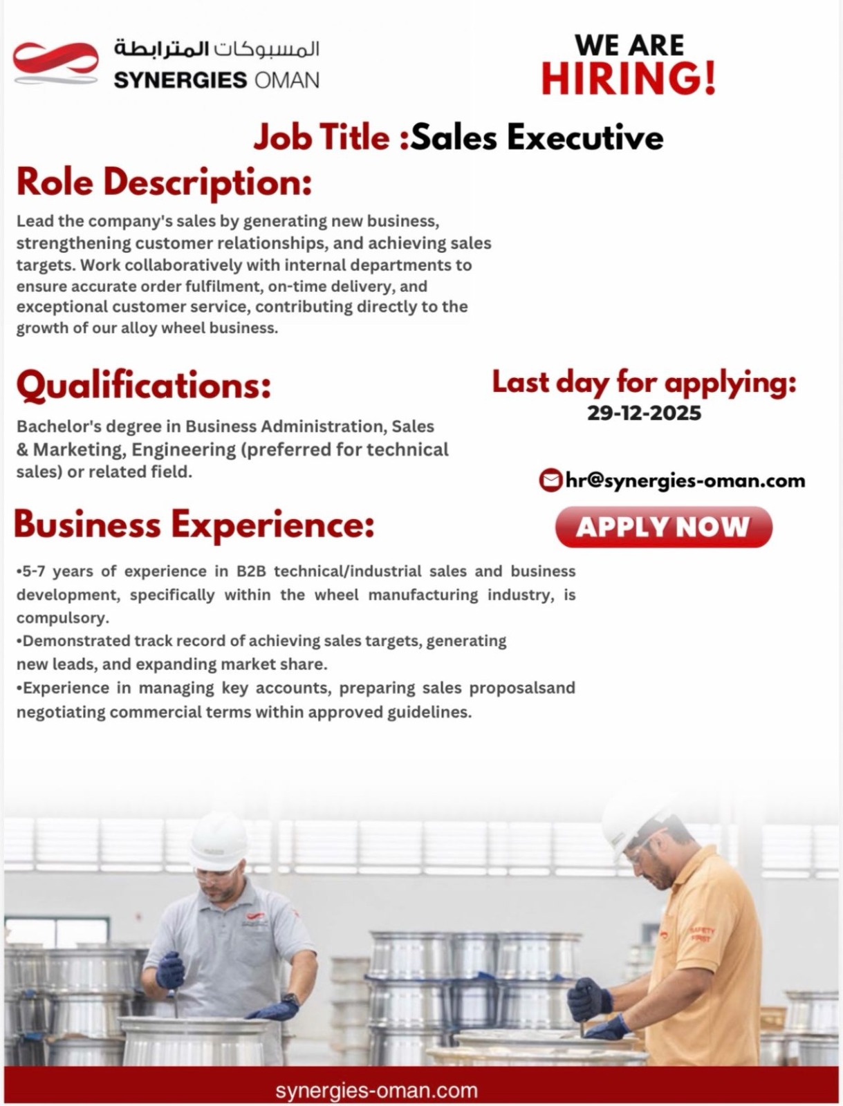 ارسل السيرة الذاتية على الايميل hr@synergies-oman.com