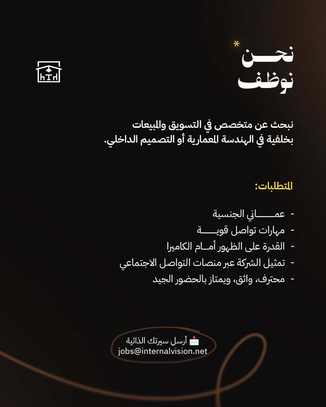 ارسل السيرة الذاتية على الايميل jobs@internalvision.net