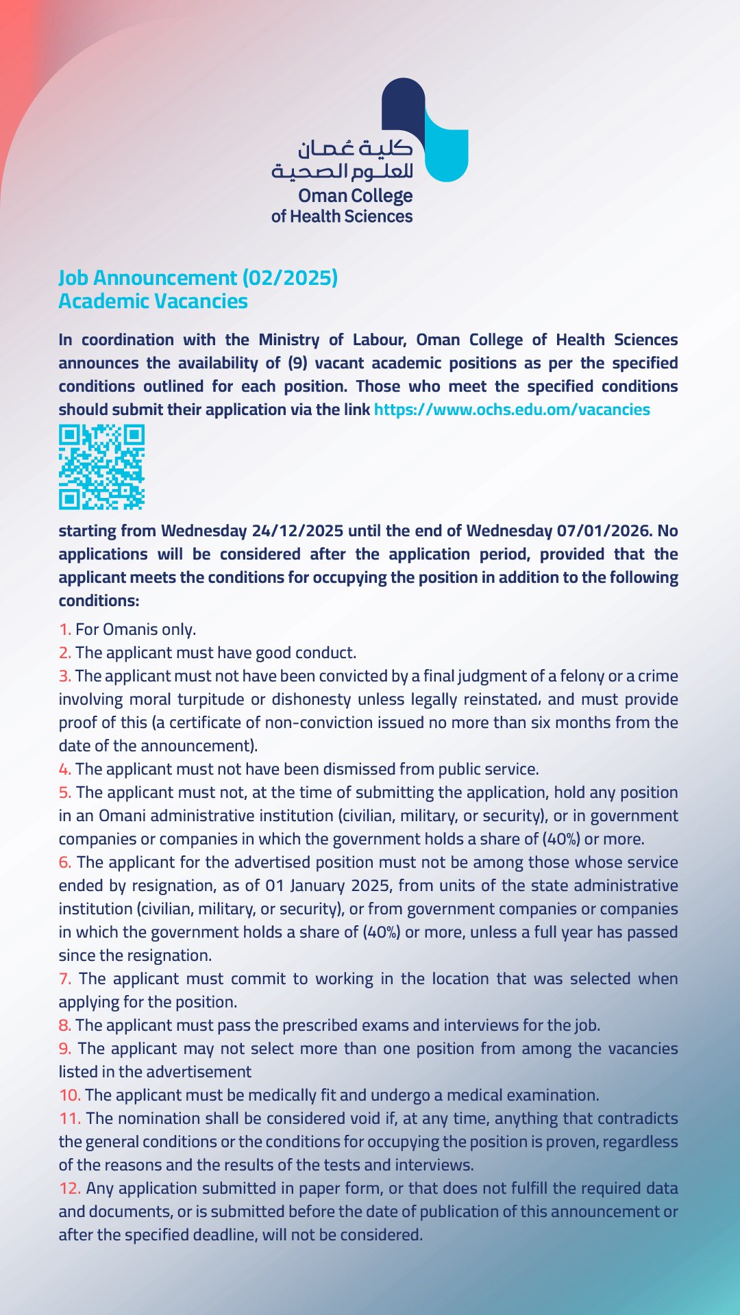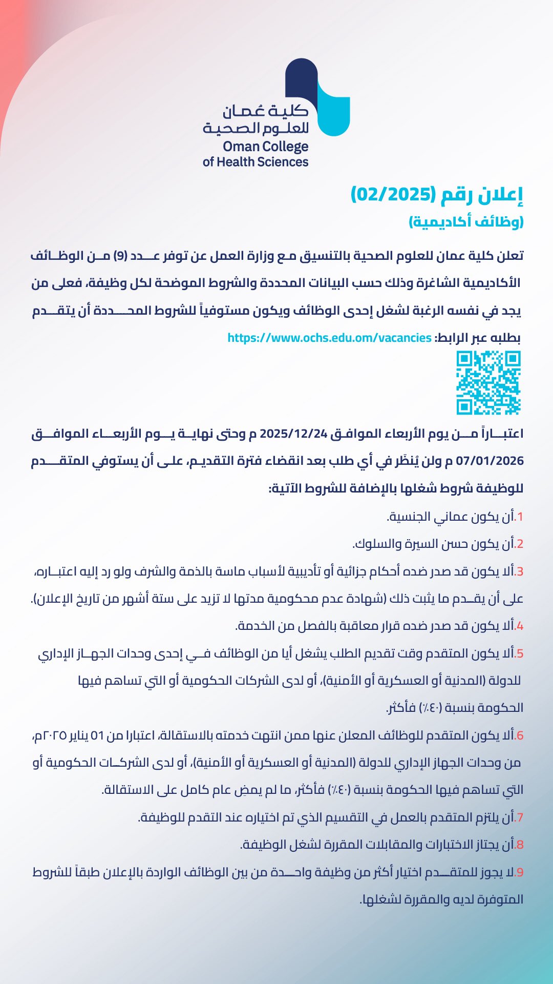 رابط التسجيل https://www.ochs.edu.om/vacancies