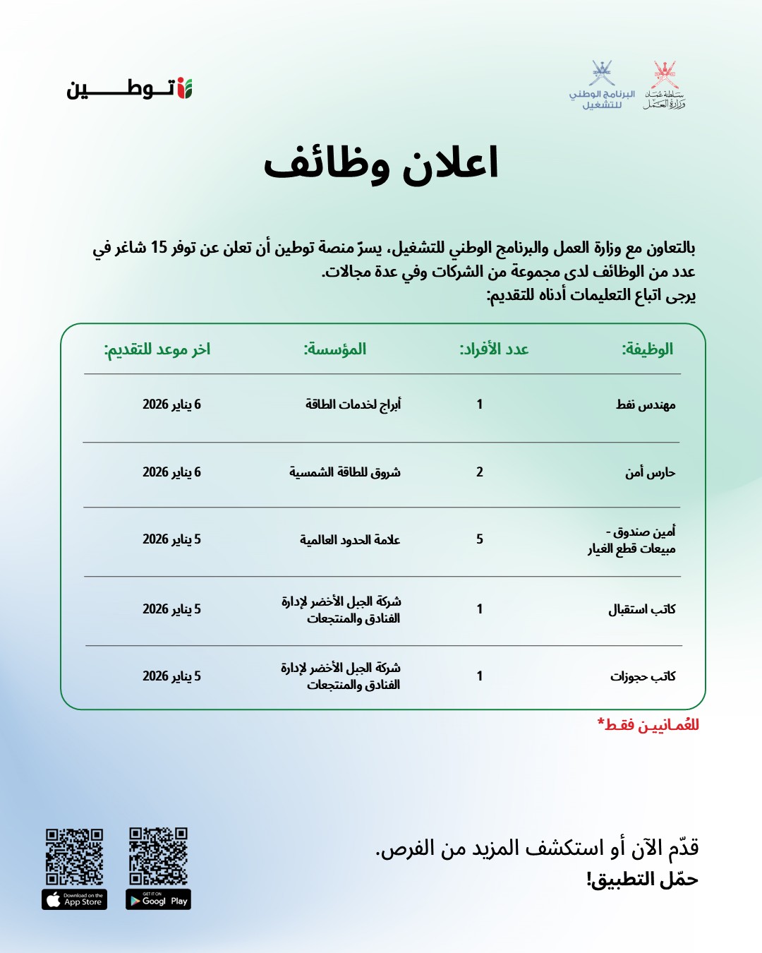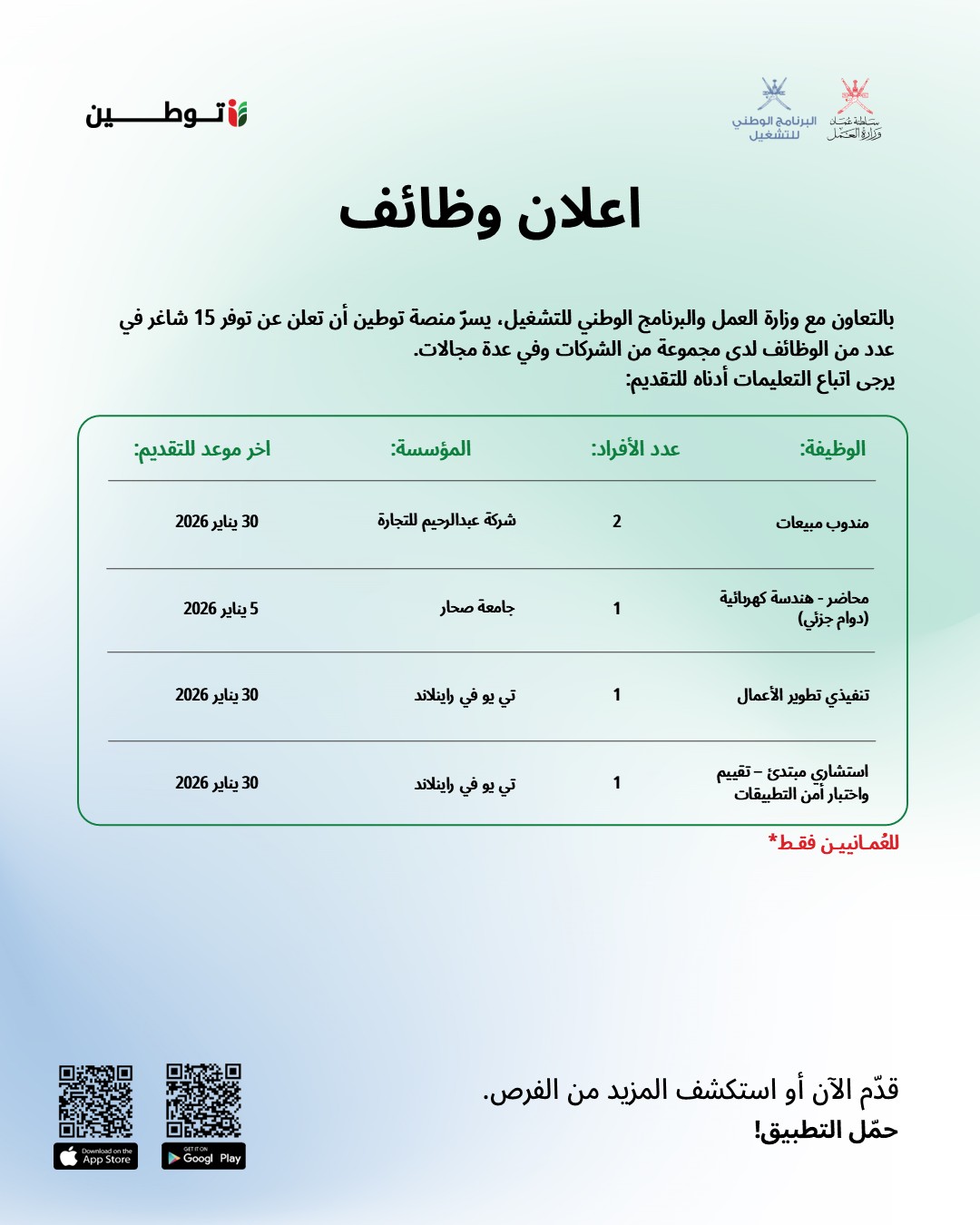 منصة توطين - توفر 15 شاغر في عدد من الوظائف لدى مجموعة من الشركات وفي عدة مجالات