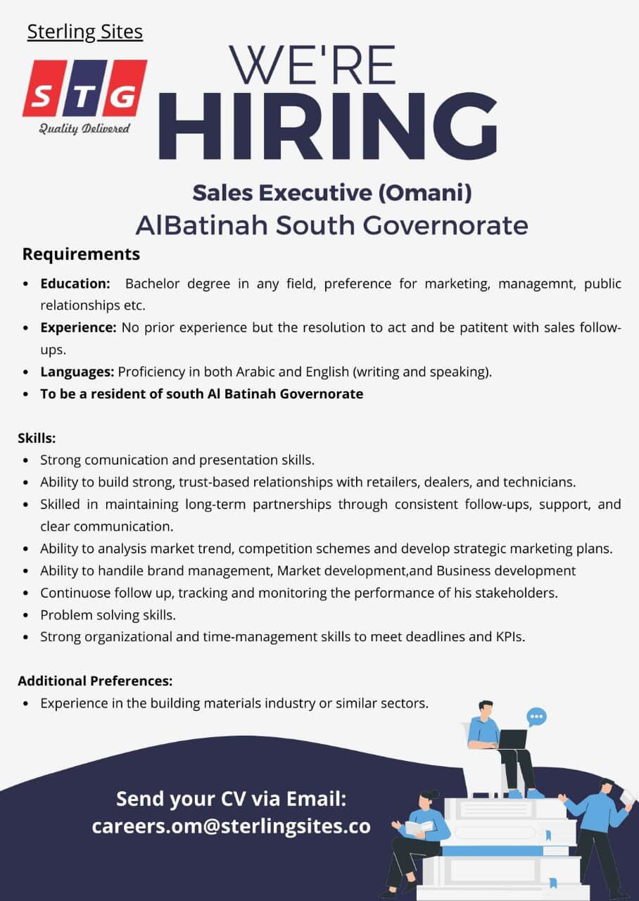 ارسل السيرة الذاتية على الايميل careers.om@sterlingsites.co