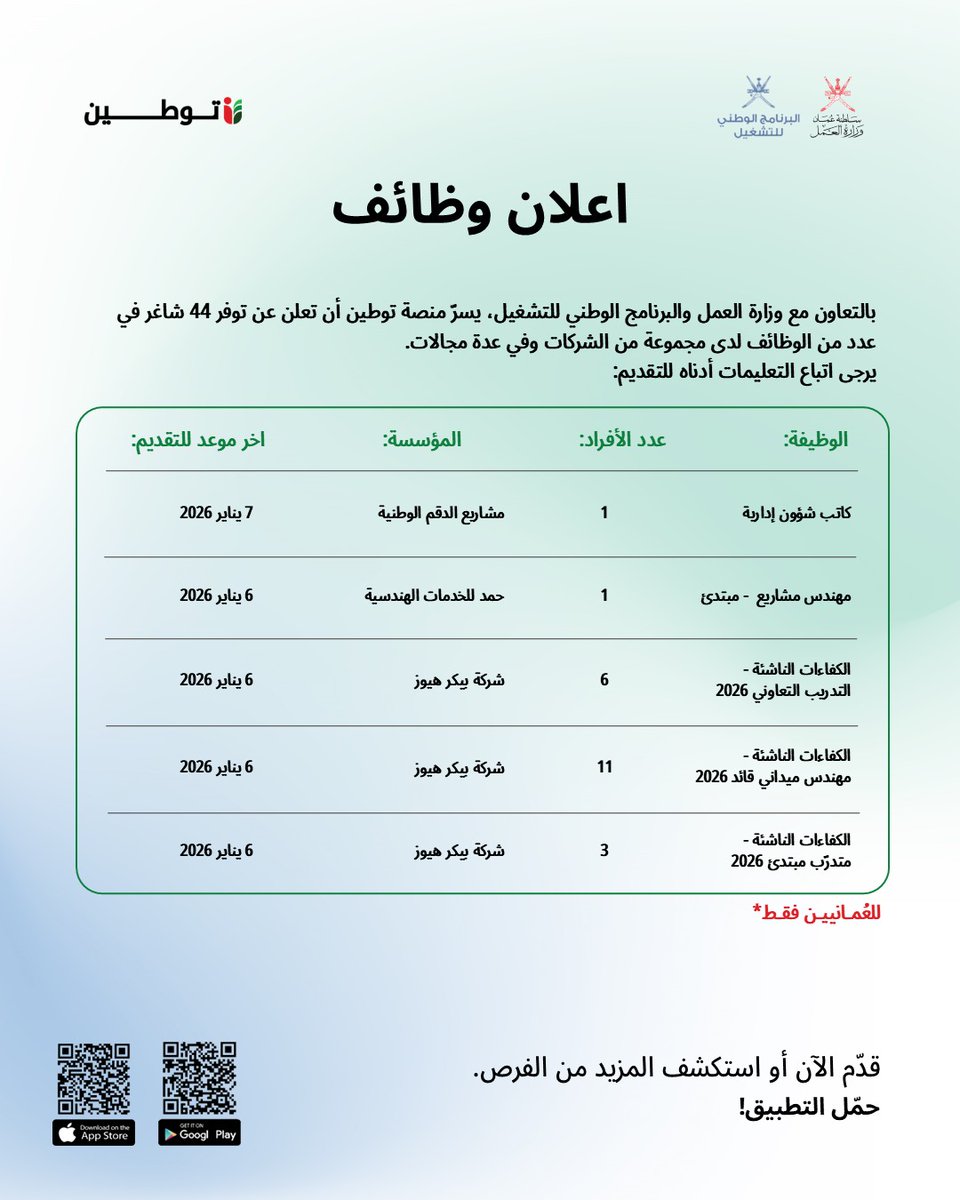 منصة توطين - توفر 44 شاغر في عدد من الوظائف لدى مجموعة من الشركات وفي عدة مجالات