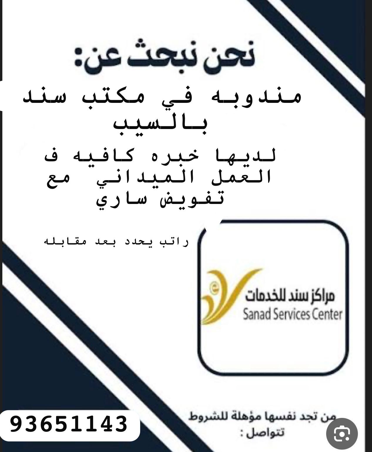 مكتب سند للخدمات في السيب - وظيفة شاغرة ( مندوبة )