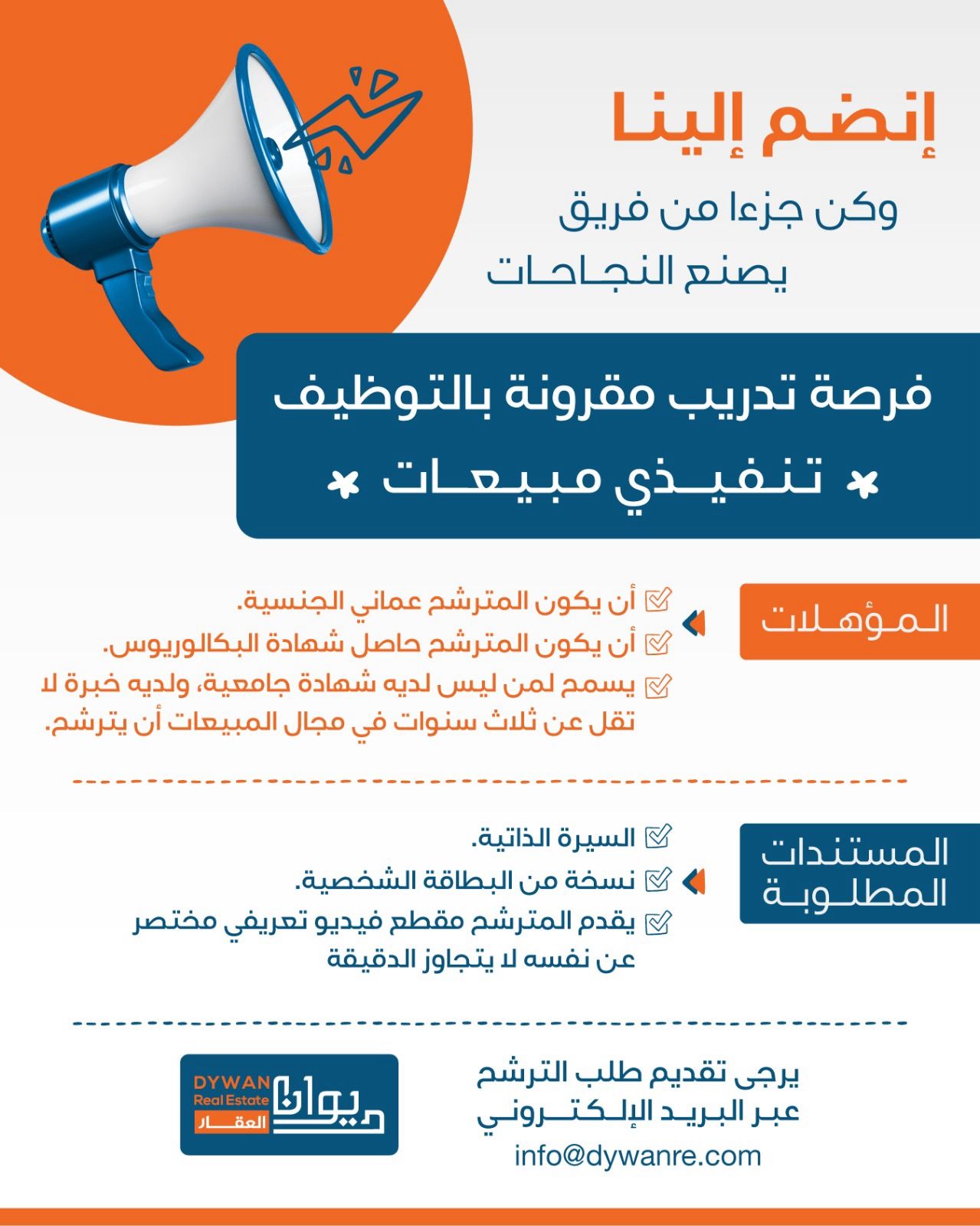 ارسل السيرة الذاتية على الايميل info@dywanre.com او على الواتساب 71110007