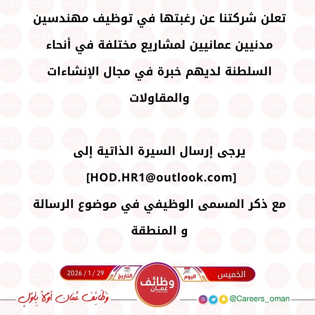 ارسل السيرة الذاتية على الايميل HOD.HR1@outlook.com
