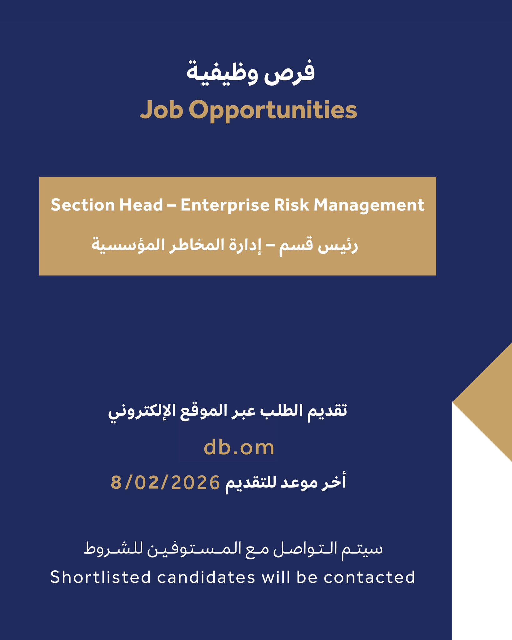 بنك التنمية - وظيفة شاغرة ( رئيس قسم - إدارة المخاطر المؤسسية )