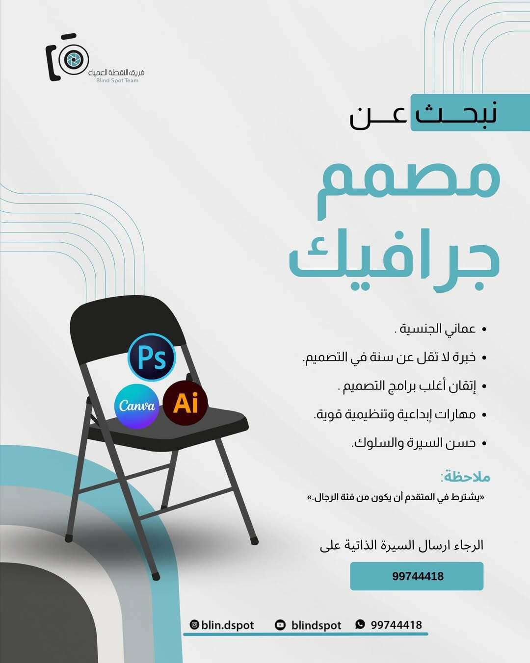 فريق النقطة العمياء - وظيفتين شاغرتين ( مصمم جرافيك + مروج مبيعات )