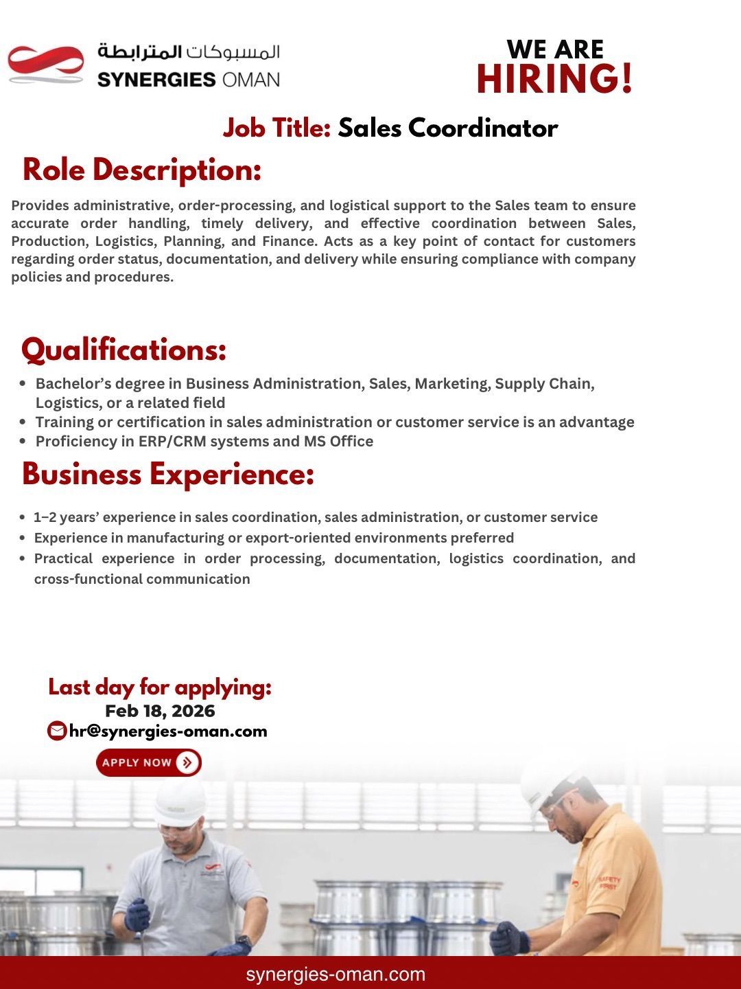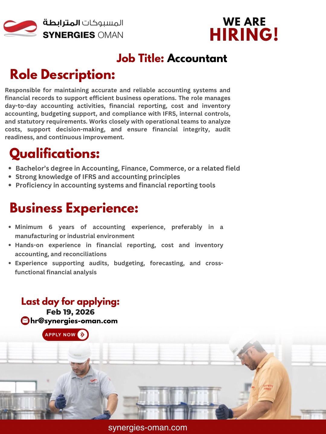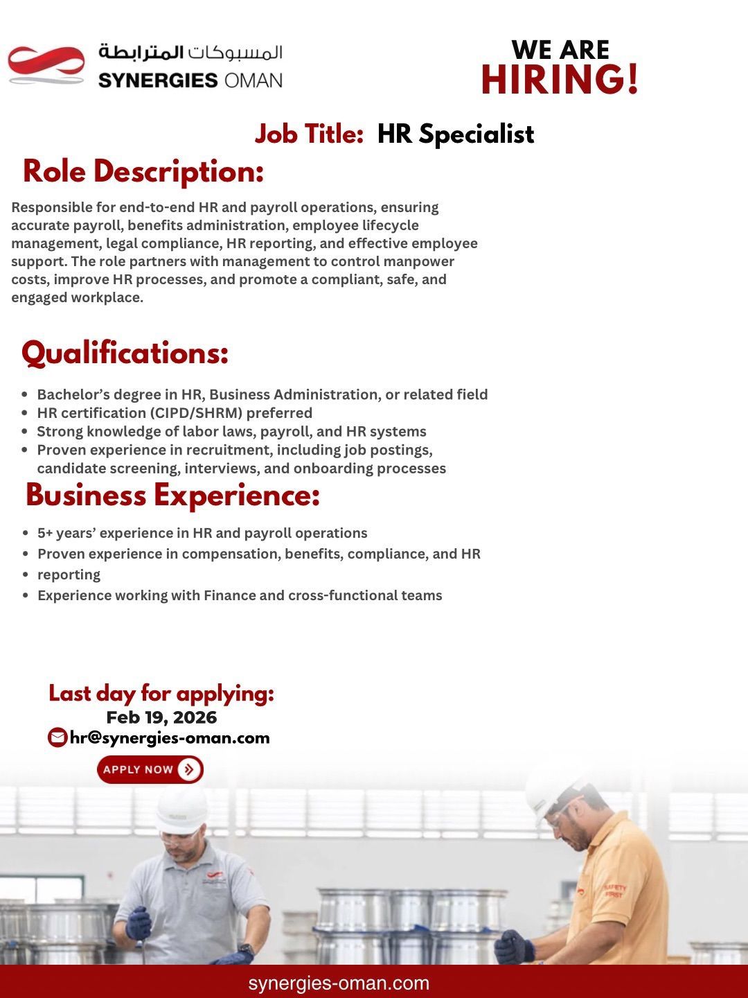 ارسل السيرة الذاتية على الايميل hr@synergies-oman.com