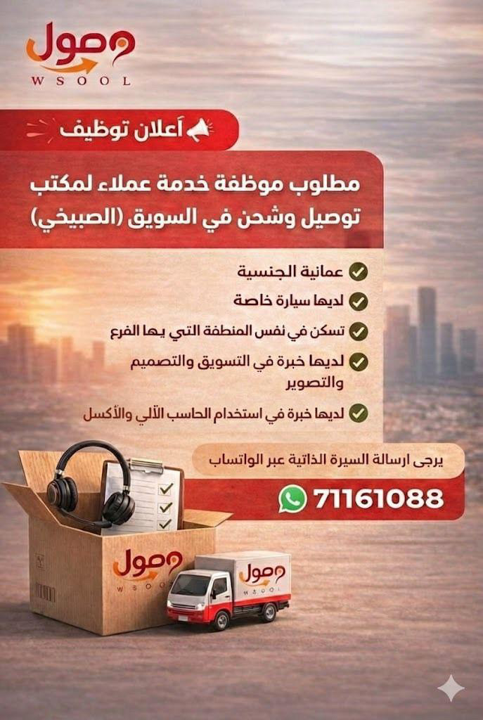 ارسل السيرة الذاتية على الايميل yaseer@w8shippingom.com