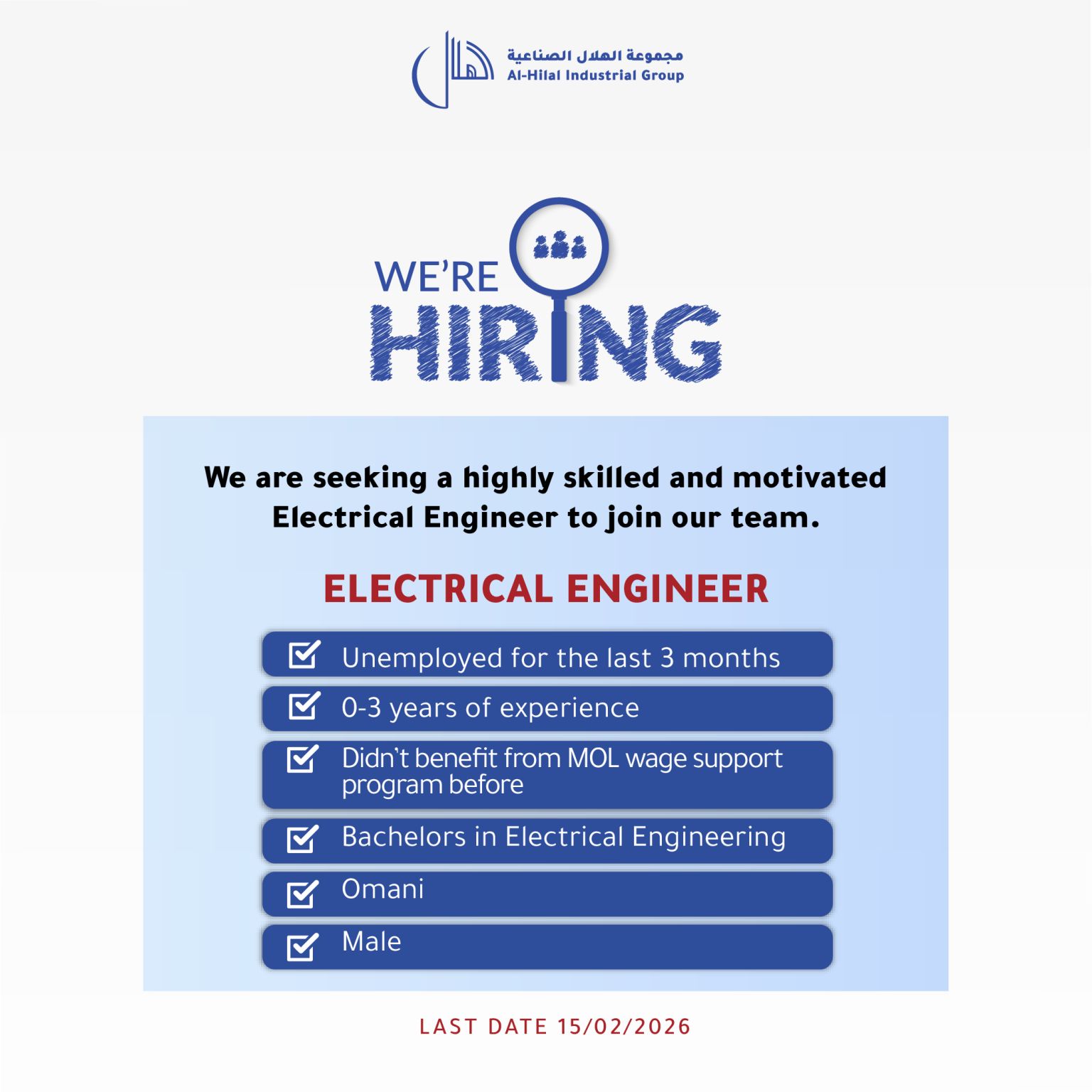 مجموعة الهلال الصناعية - وظيفة شاغرة ( Electrical Engineer )