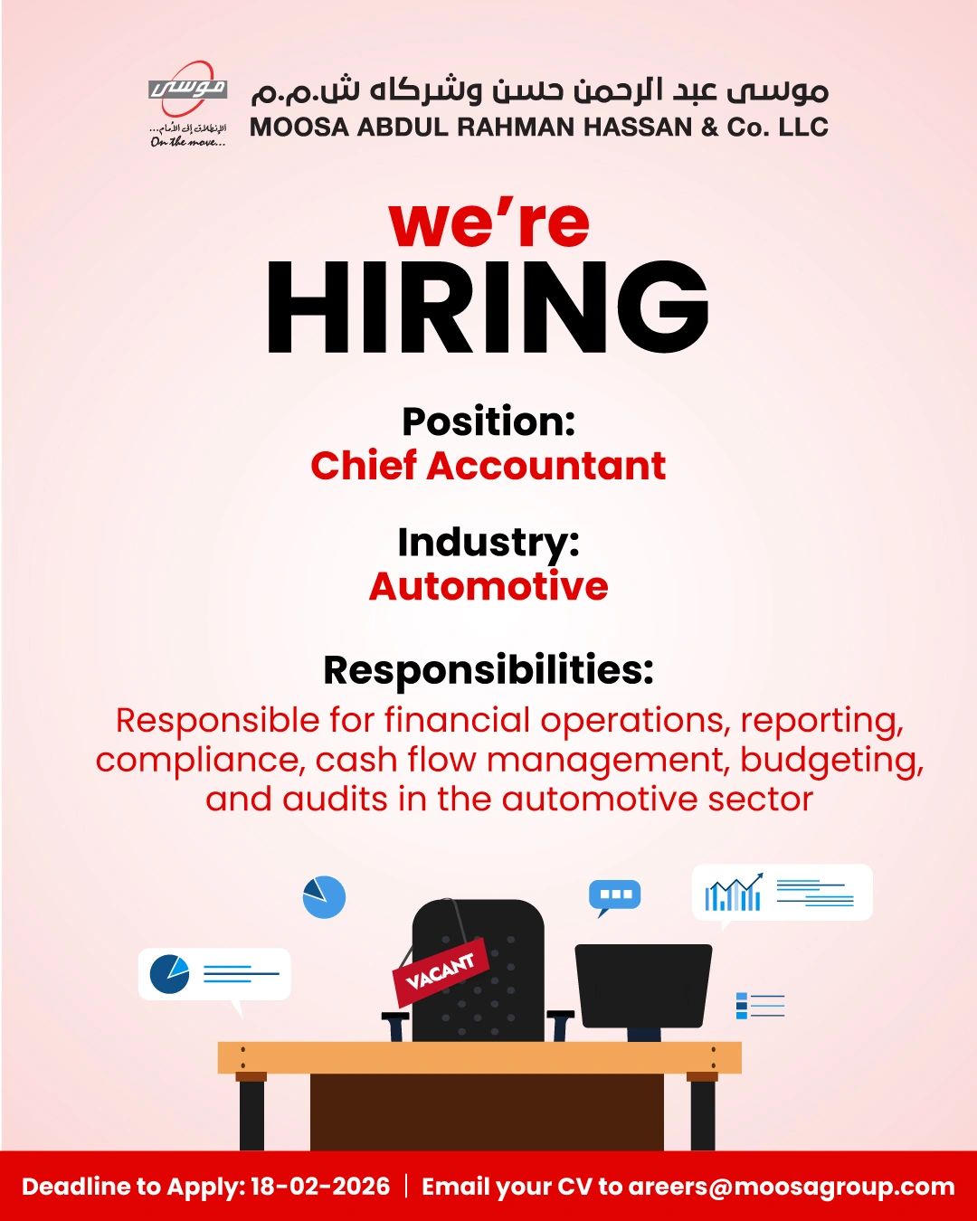 ارسل السيرة الذاتية على الايميل careers@moosagroup.com