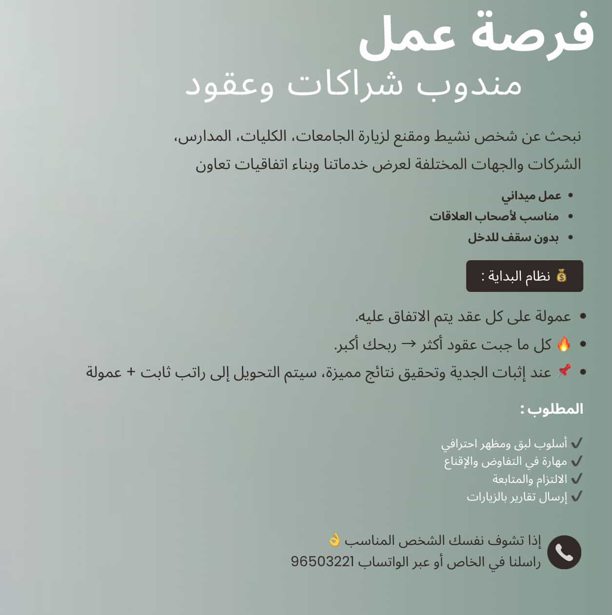 شركة رائدة في مسقط - وظيفة شاغرة ( مندوب شراكات وعقود )