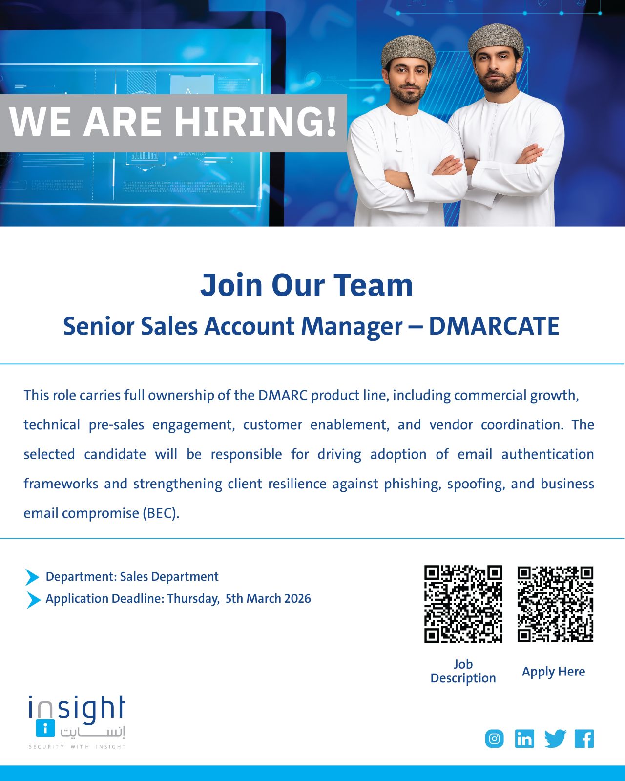 شركة إنسايت - وظيفة شاغرة ( Senior Sales Account Manager – DMARCATE )