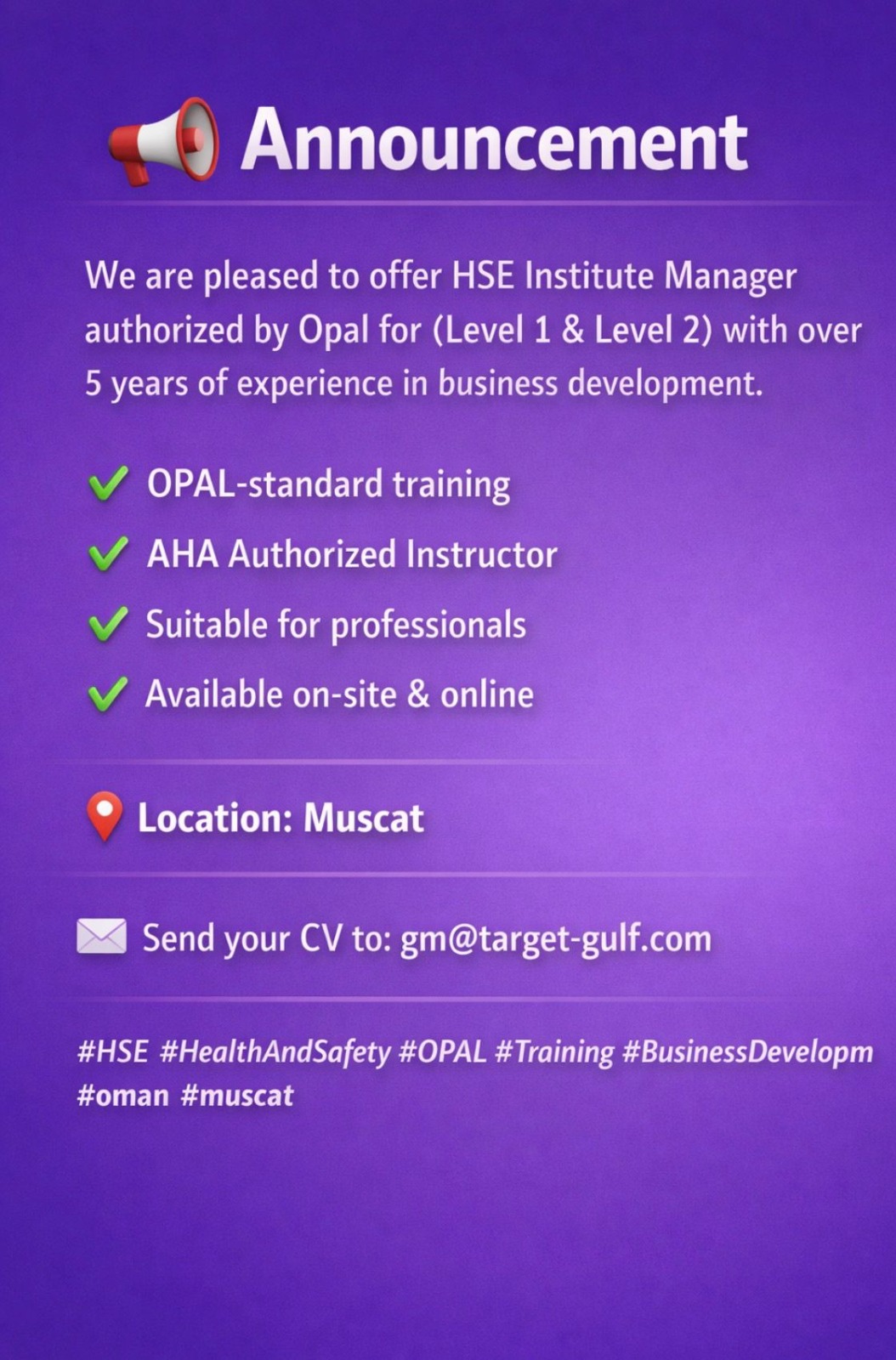 احدى المعاهد في مسقط - وظيفة شاغرة ( HSE Institute Manager )