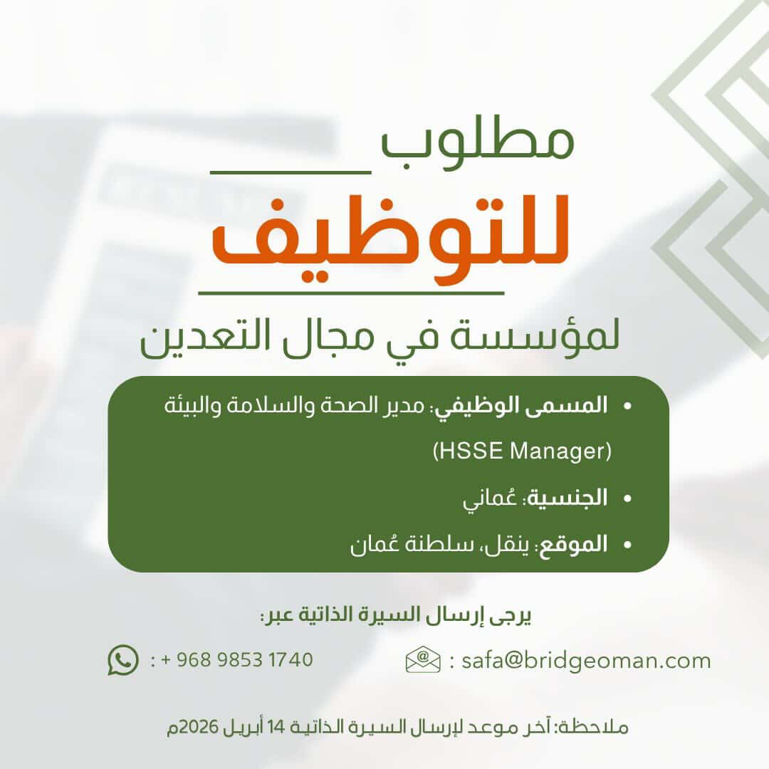 ارسل السيرة الذاتية على الايميل safa@bridgeoman.com