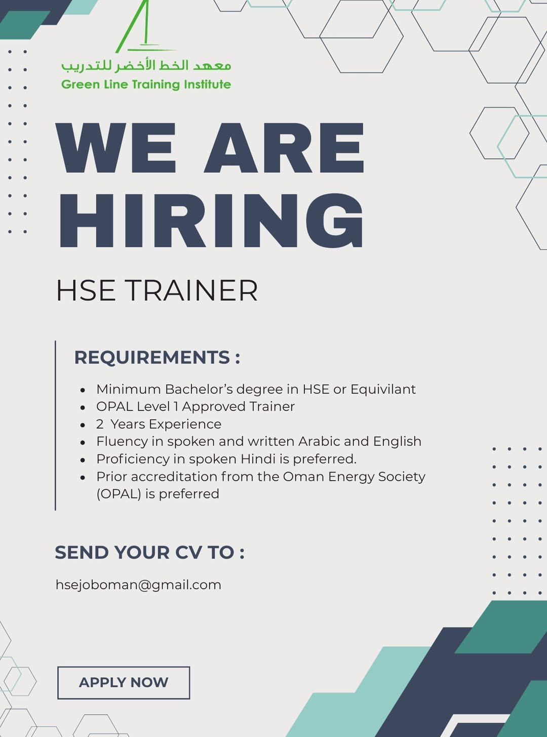 معهد الخط الأخضر للتدريب في غلا - وظيفة شاغرة ( مدرب صحة وسلامة مهنية )