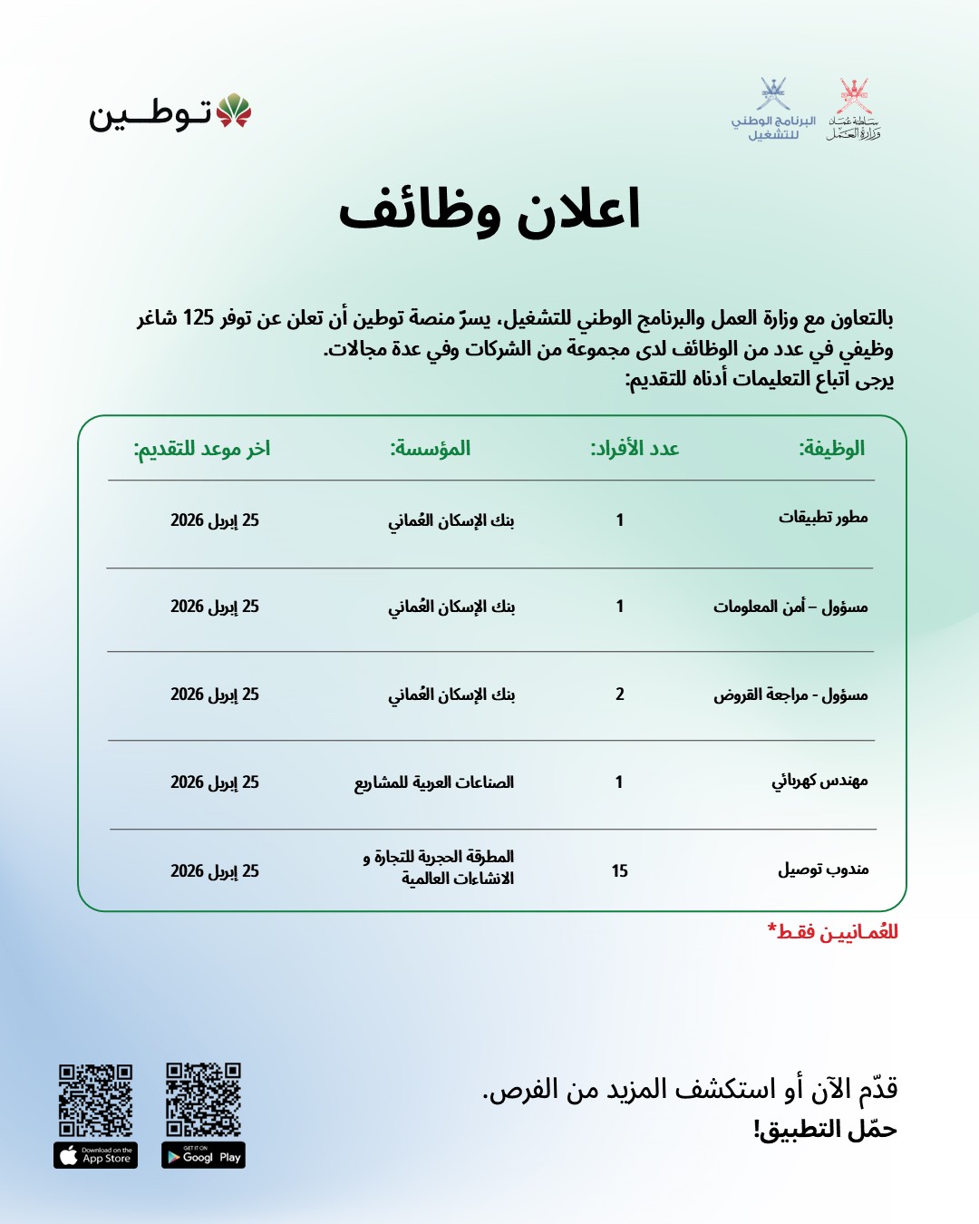 منصة توطين - توفر 125 وظيفة شاغرة لدى مجموعة من الشركات وفي عدة مجالات