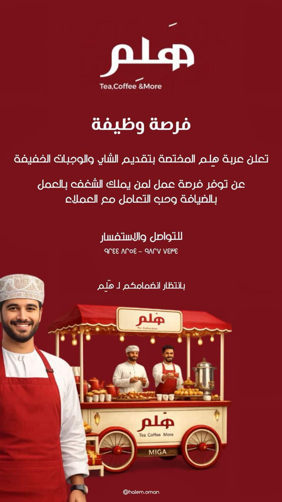 عربة هلم في سمائل - وظيفة شاغرة ( مقدم الوجبات الخفيفة والشاي )