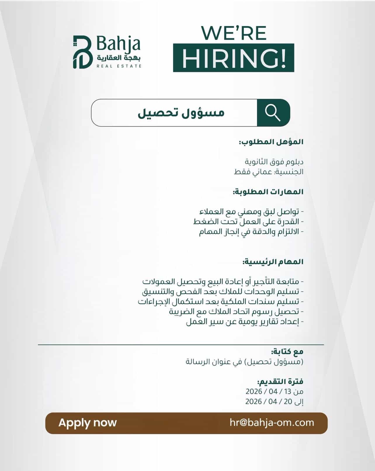 ارسل السيرة الذاتية على الايميل hr@bahja-om.com