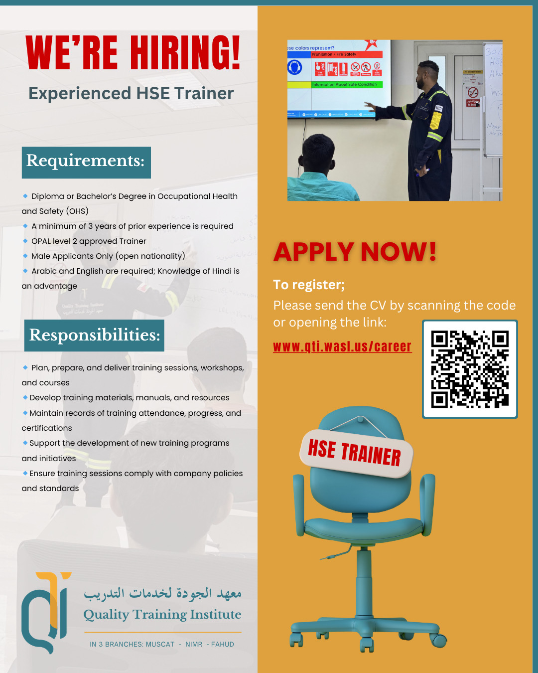 معهد الجودة لخدمات التدريب - توفر شاغر ( مدرب HSE محترف )