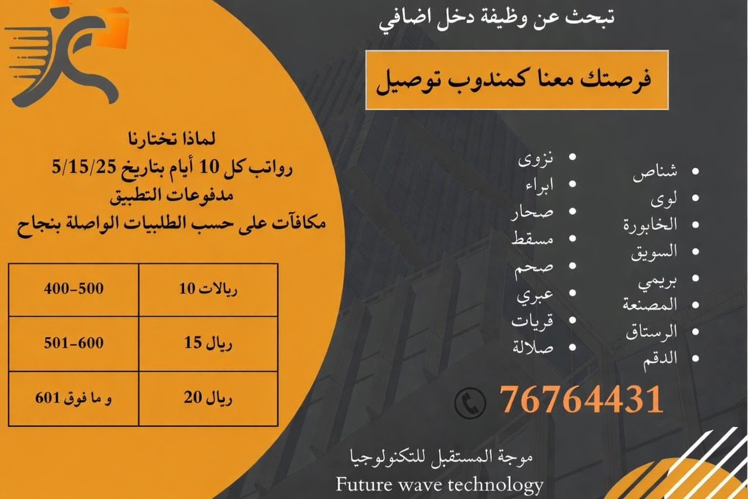 شركة موجة المستقبل للتكنولوجيا - فرصة شاغرة ( مندوبي توصيل في مختلف الولايات )