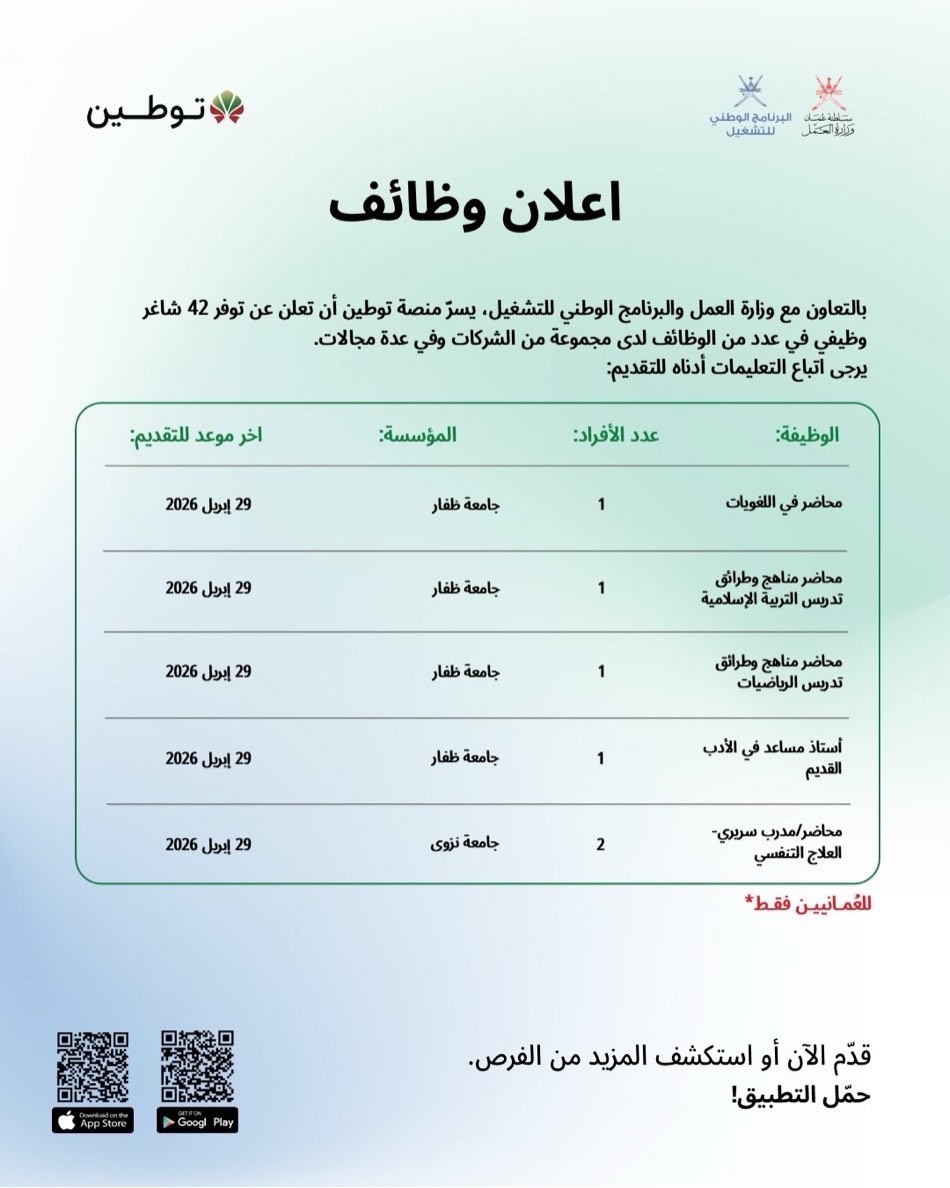 منصة توطين - توفر 42 وظيفة شاغرة لدى مجموعة من الشركات وفي عدة مجالات