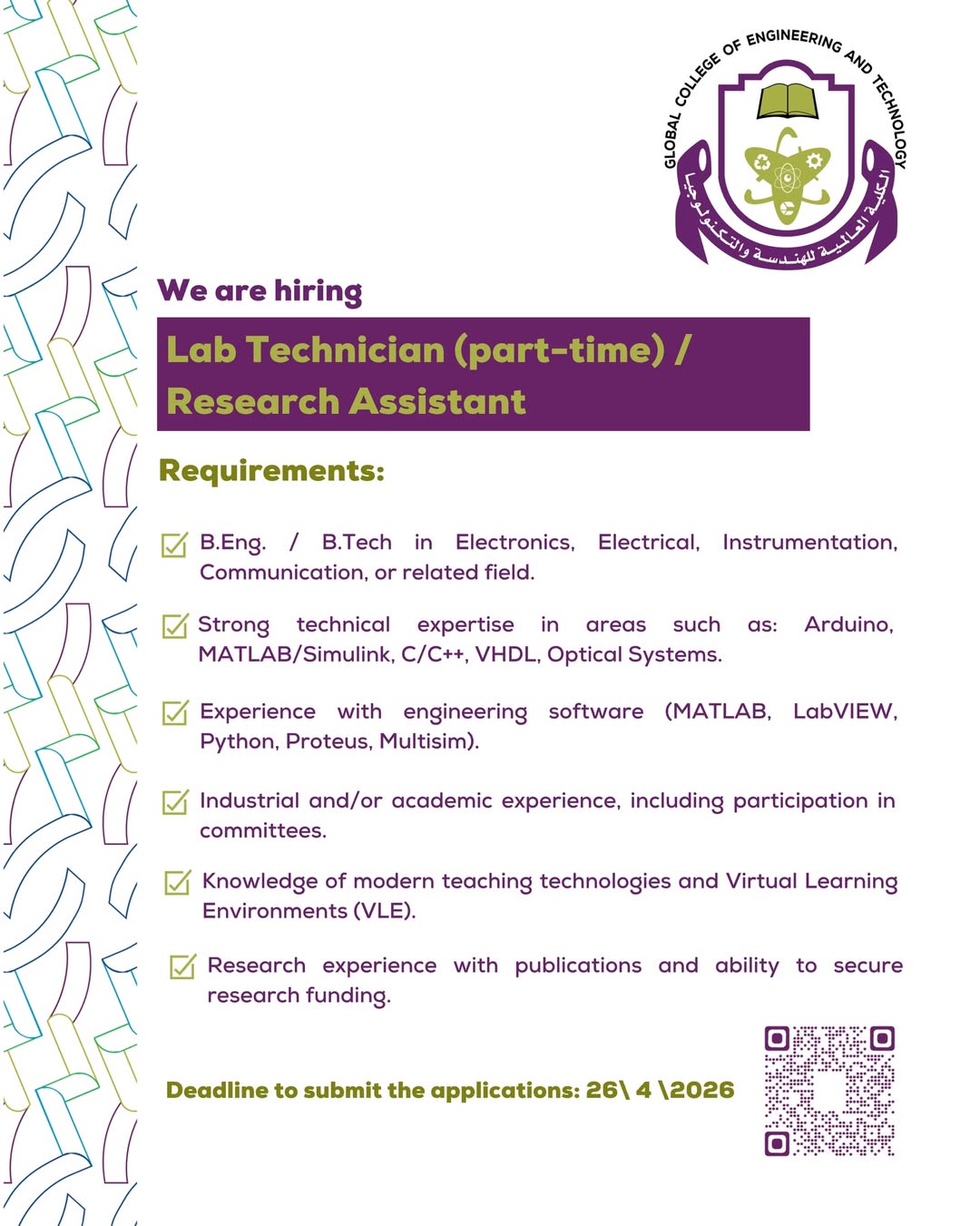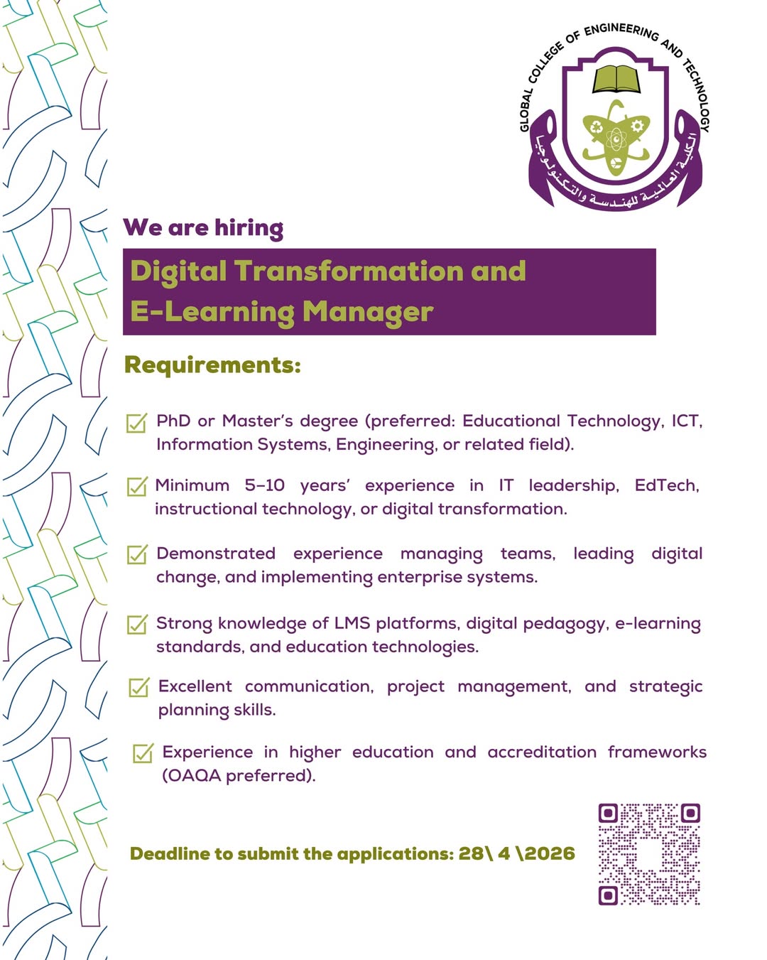 رابط التسجيل https://gcet.edu.om/en/job-vacancies/